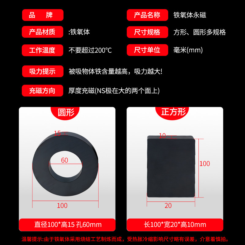 大号铁氧体喇叭磁强磁吸铁石高强力普通磁铁耐高温方形黑磁铁磁石