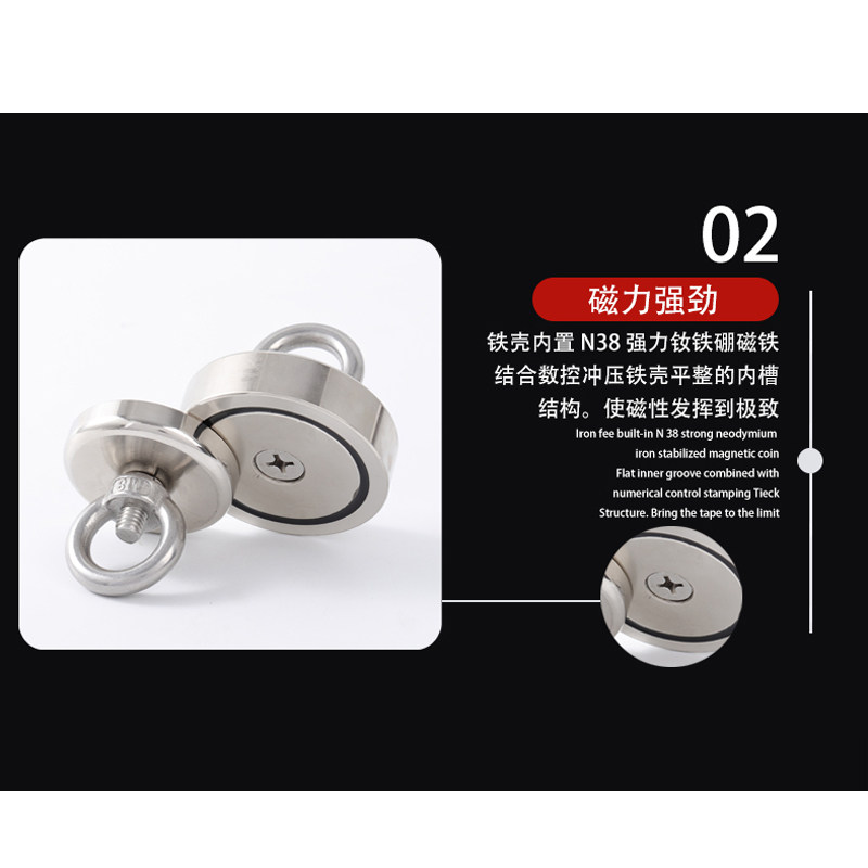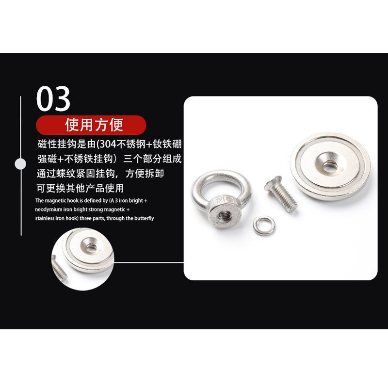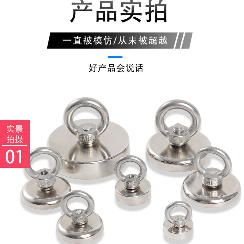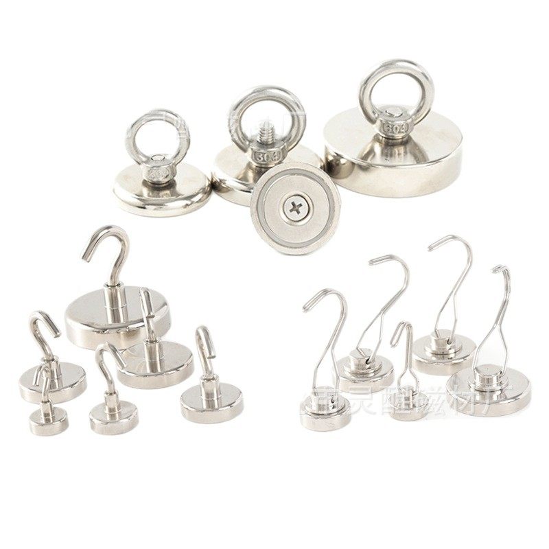强力磁吸挂钩打捞磁铁吊环强磁吸铁石固定吸盘铁壳防撞锅磁