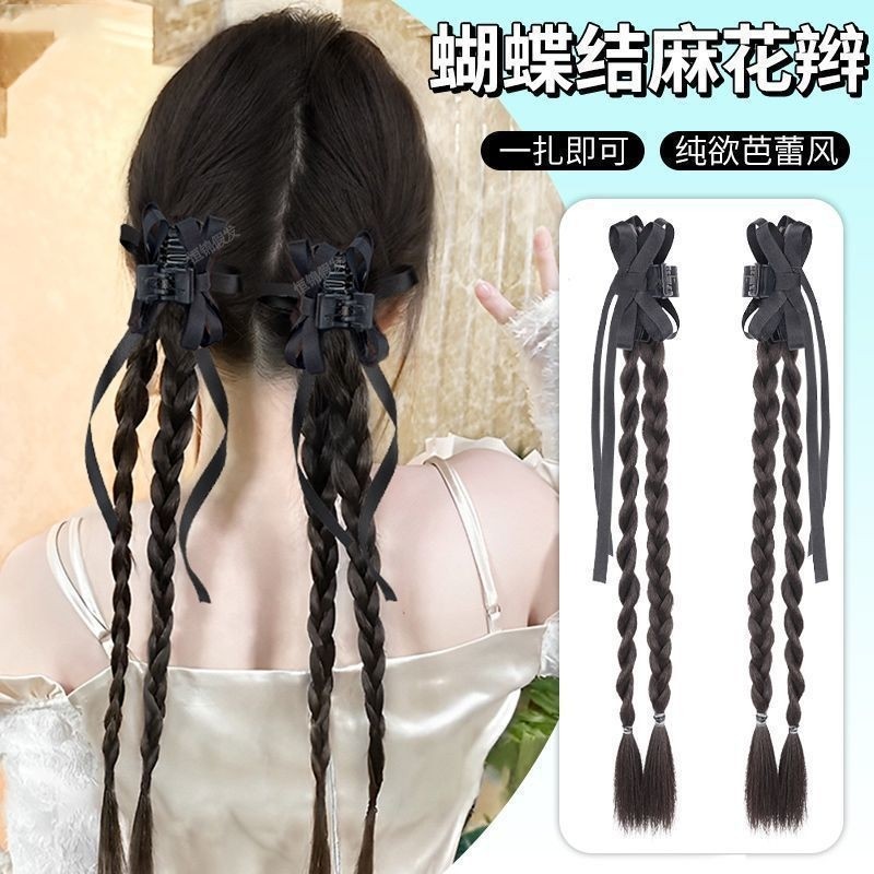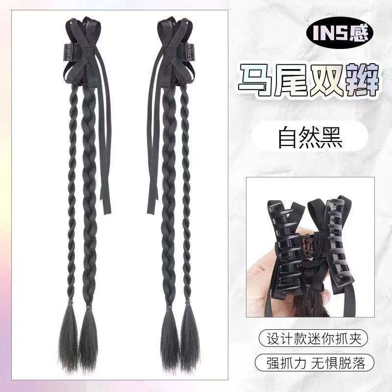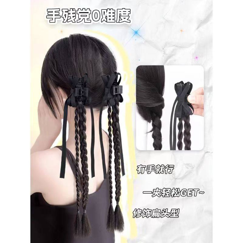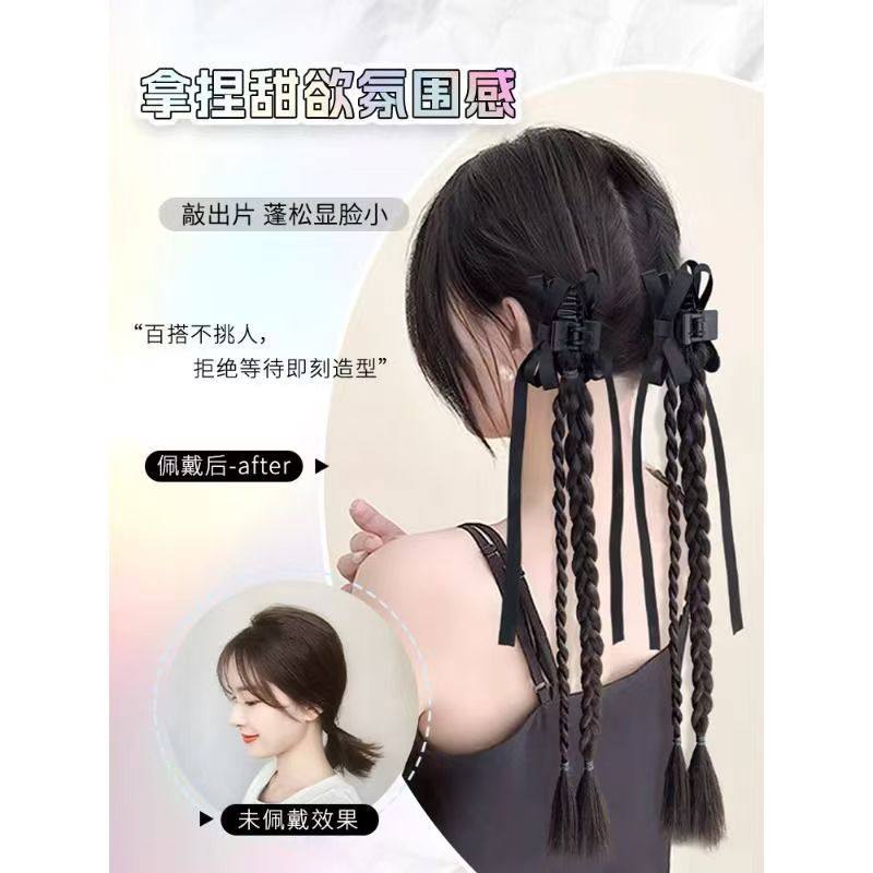 假发辫子女抓夹高马尾ins丝带长辫古风新中式假发辫发型蝴蝶结