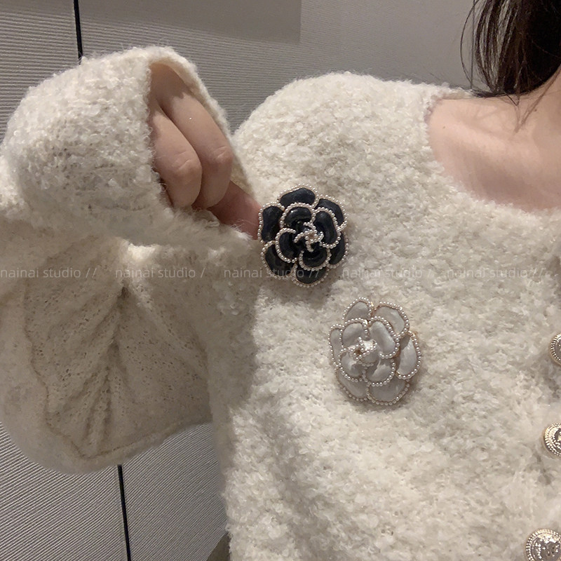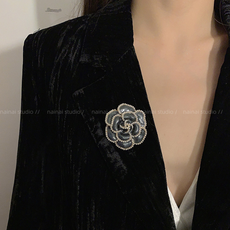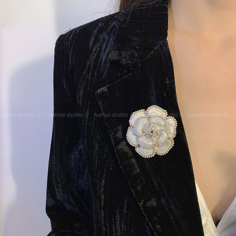 山茶花胸针~小香风复古法式珍珠别针花朵小众设计高级感西装配饰