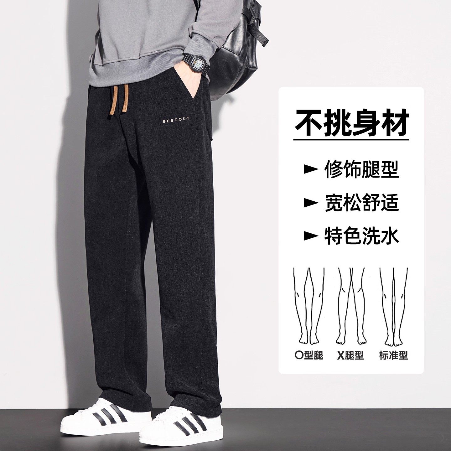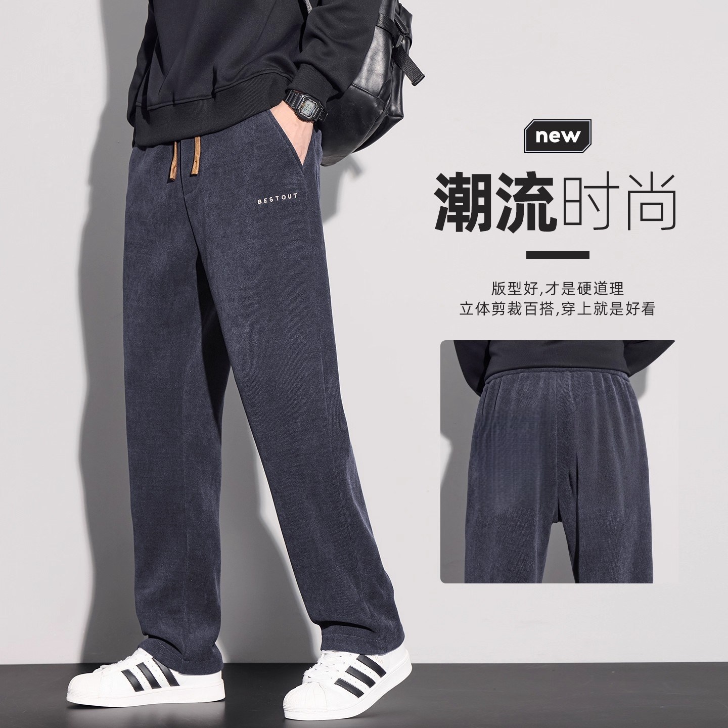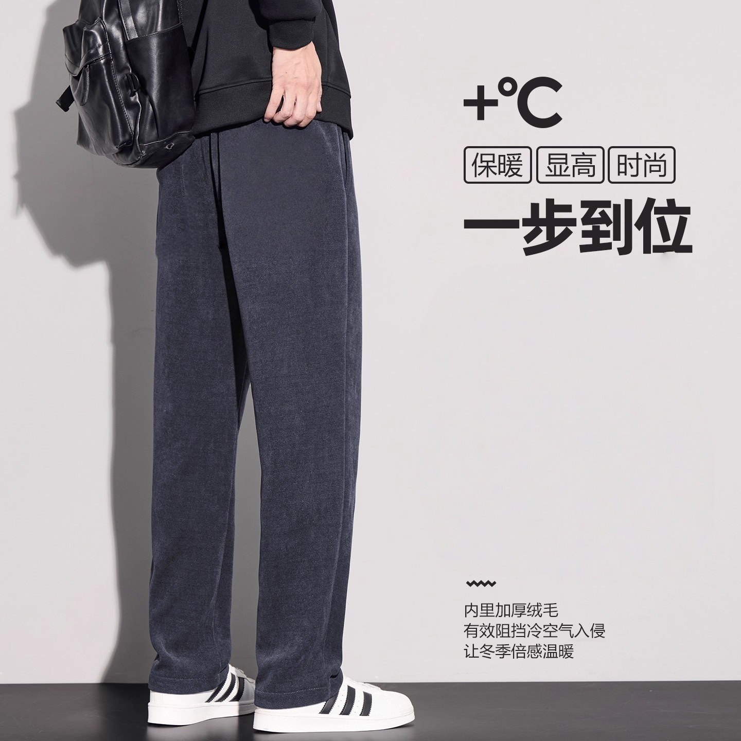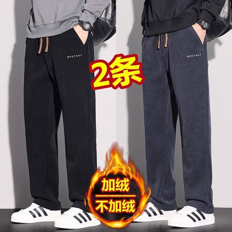 灯芯绒加绒裤子男款秋冬季运动卫裤直筒休闲裤阔腿抓绒裤男裤
