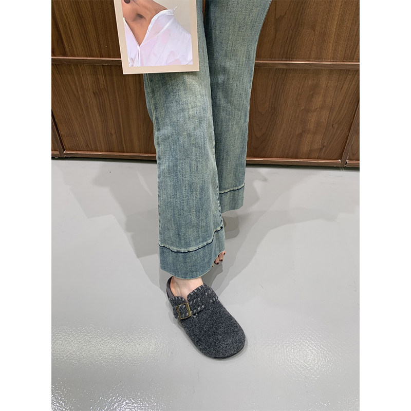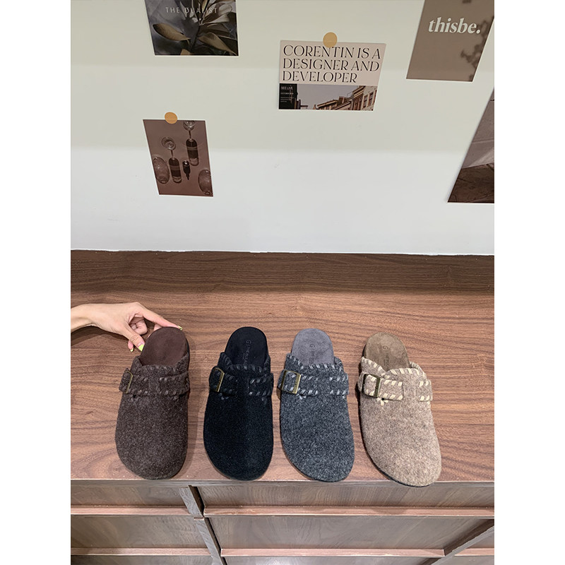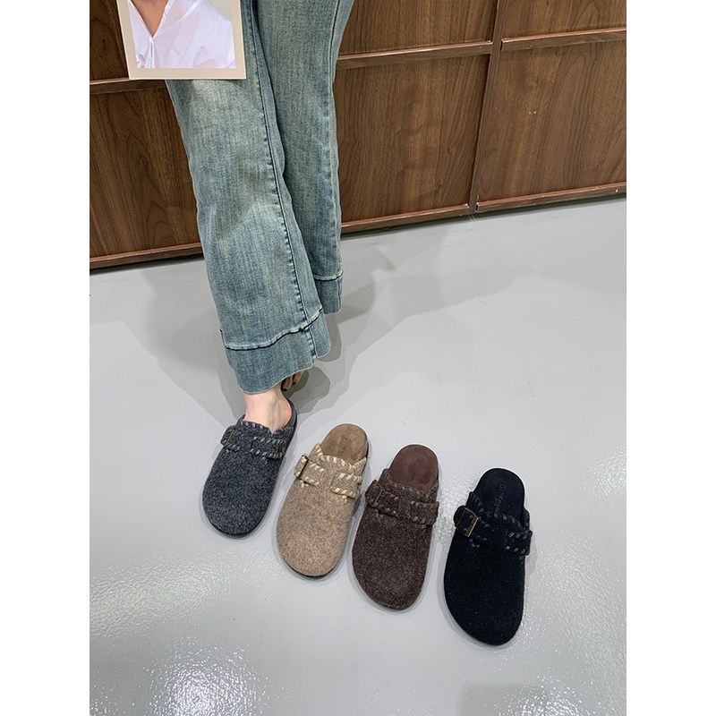 网红呢子厚底勃肯鞋拖鞋懒人毛毛鞋女外穿2025秋冬增高毛茸茸半拖