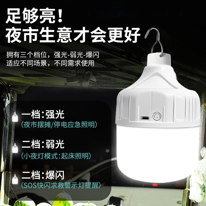 USB充电灯泡应急照明灯家用停电夜市摆摊地摊灯户外超亮LED露营灯