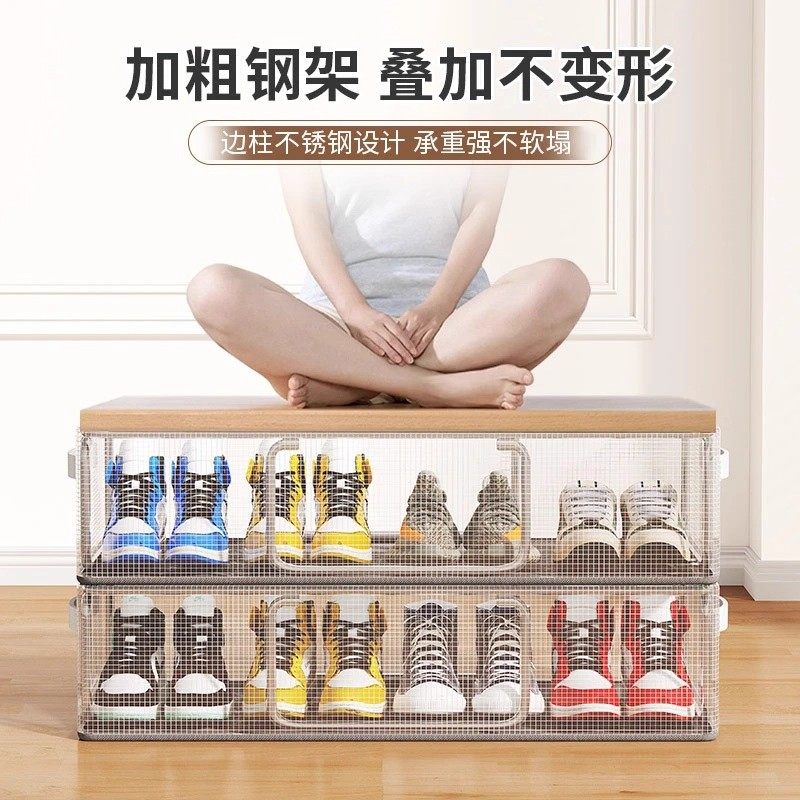 网格鞋盒鞋子收纳神器透明省空间防尘鞋柜放靴子床底可折叠鞋架
