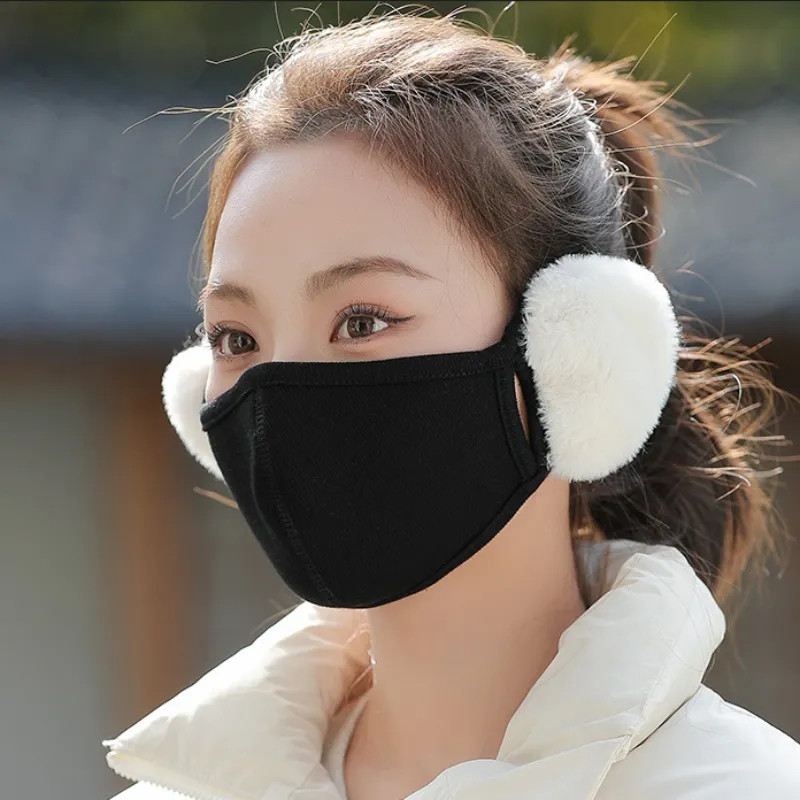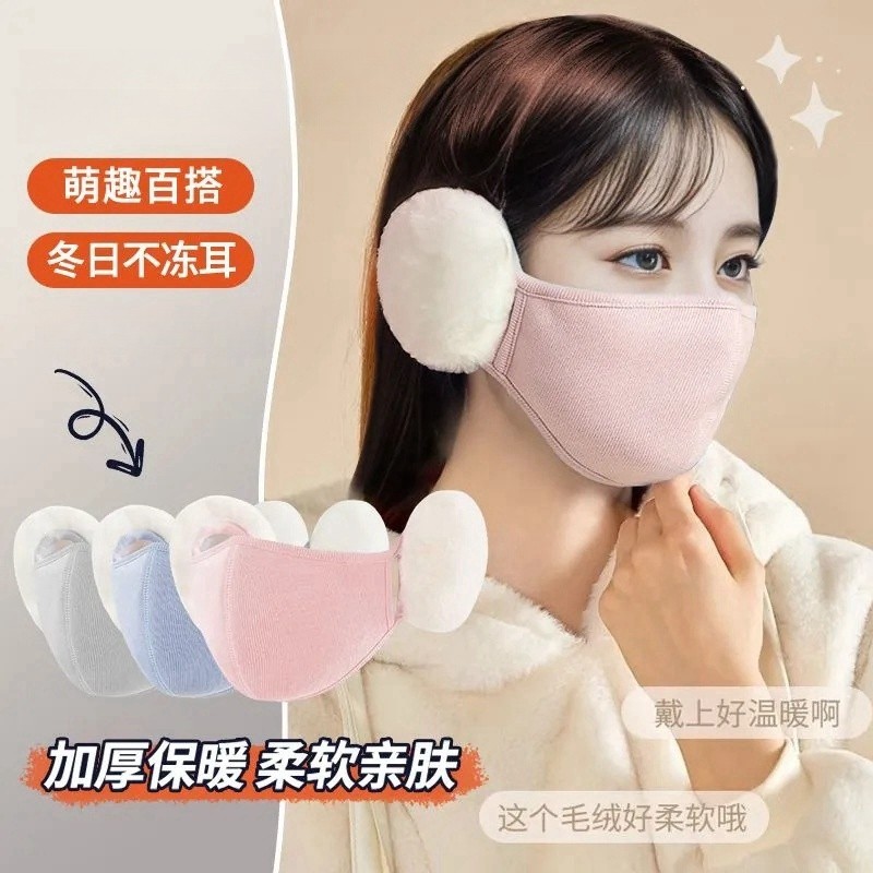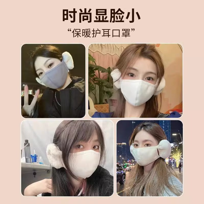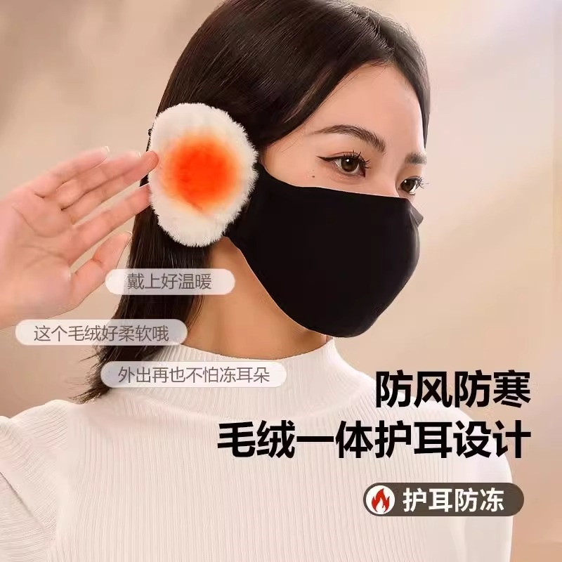 骑行防风加绒耳罩女冬季保暖口罩防寒耳套护耳朵神器二合一面罩
