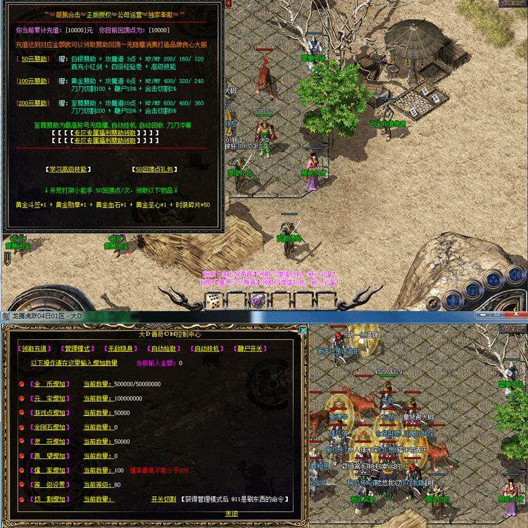 传奇单机版龙腾合击+2自动捡物回收鉴定爬塔刀刀切割带GM智能假人