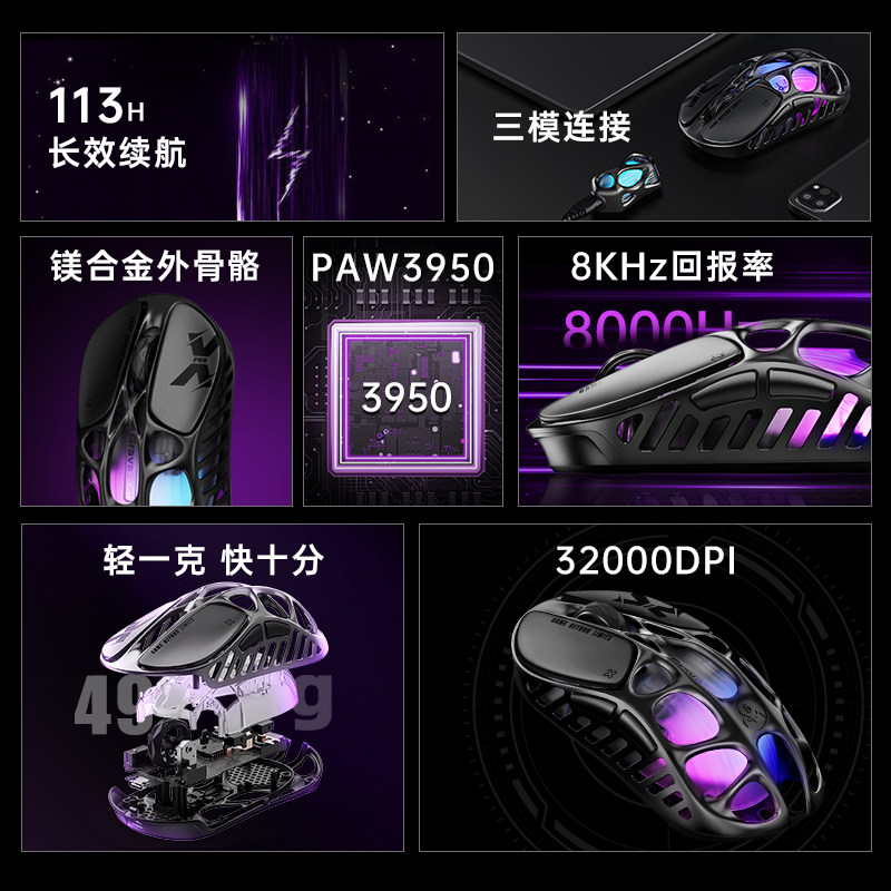 重力星球破茧Xpro无线鼠标镂空轻量化游戏电竞专用三模蓝牙办公