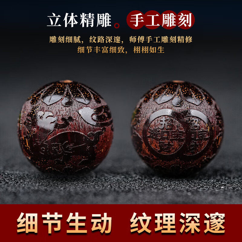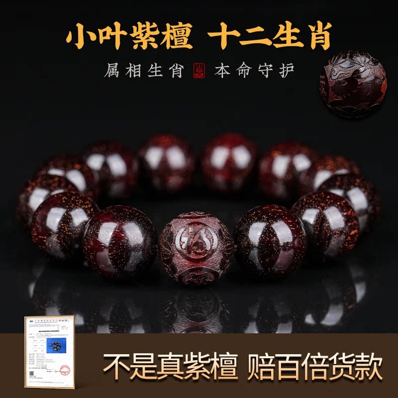 印度小叶紫檀手串檀香木雕刻男士高端文玩盘玩念珠佛珠手链女貔貅