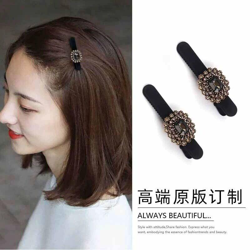 发夹轻奢前额水钻刘海碎发一字女高端丝绒侧边夹鸭嘴夹子春夏头饰