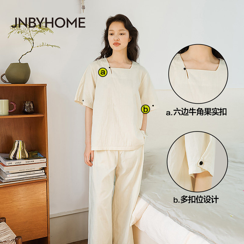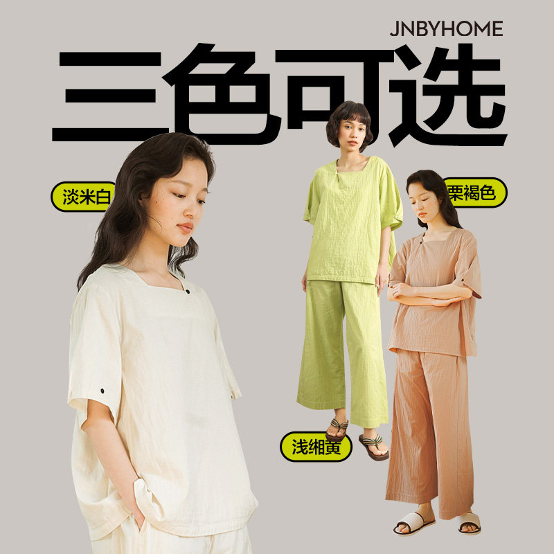 【全棉纱家居服】JNBYHOME江南布衣睡衣方领简约柔软透气可外穿