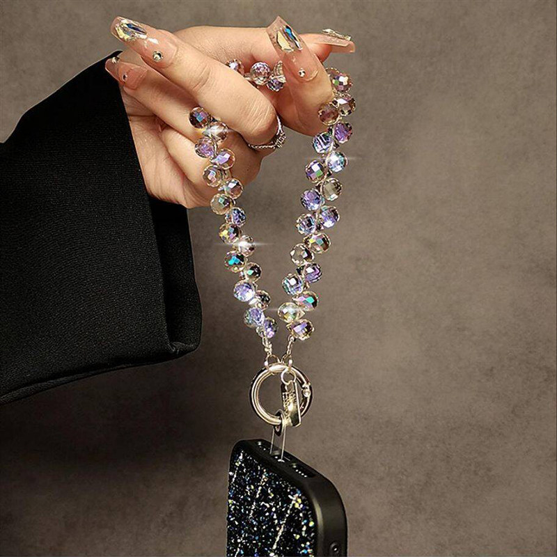 高端水晶珠子手提链条手腕包包挂绳夹片手机钥匙扣挂件挂链时尚男女同款时尚百搭高品质防丢失不影响手机充电