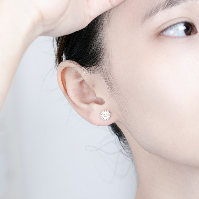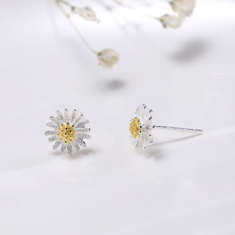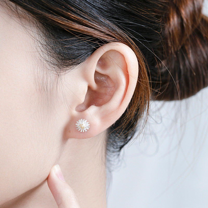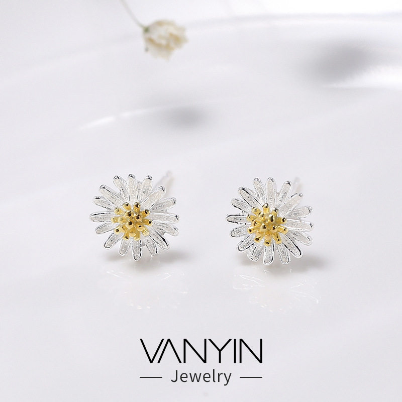 万盈首饰小雏菊耳钉女S925纯银韩版可爱甜美菊花礼物个性百搭耳饰