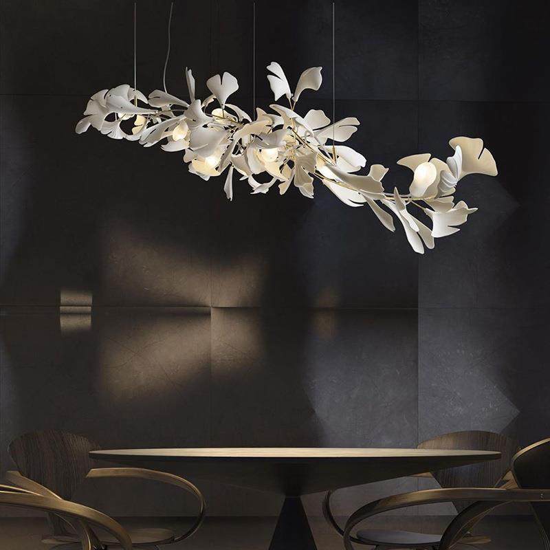 灯饰2021新款灯陶瓷银杏树枝吊灯树叶灯客厅楼梯全铜灯饰陶瓷灯