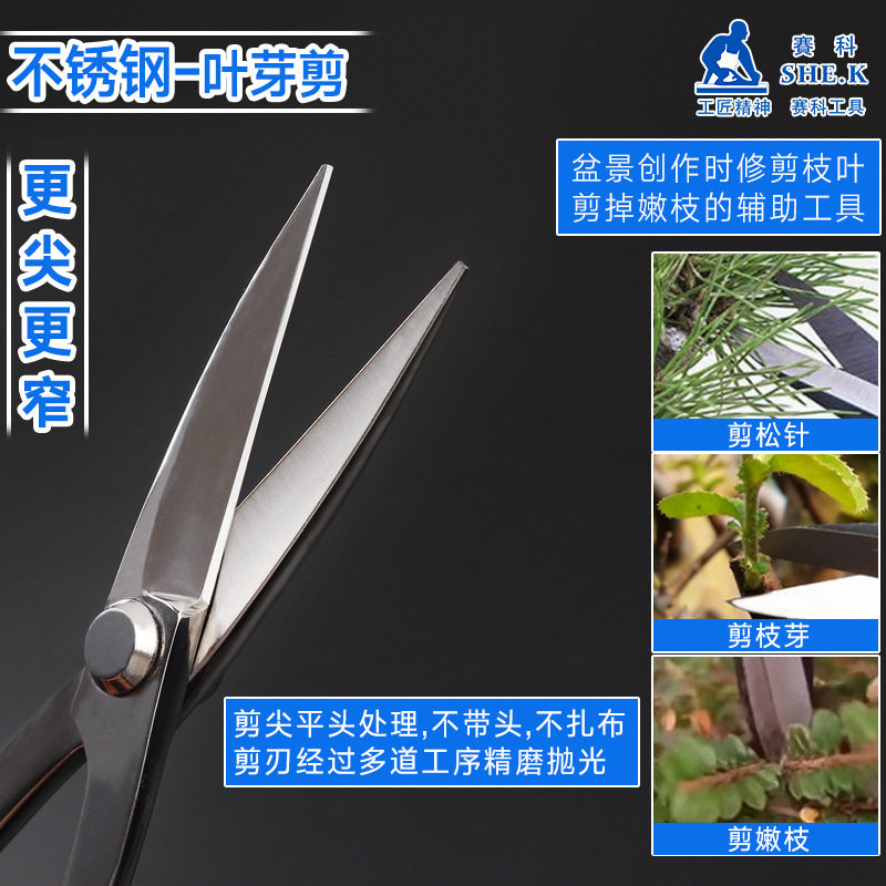 厂家直销不锈钢叶芽剪修枝剪园艺盆景造型专业工具