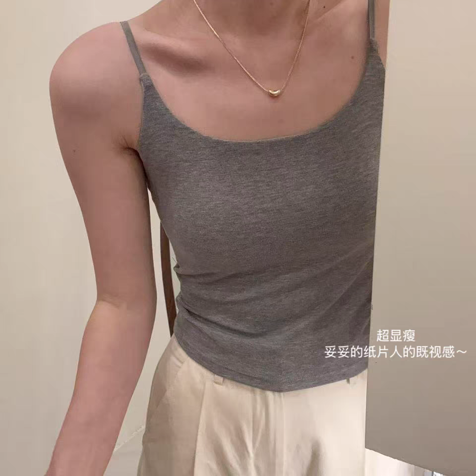 升级版承托力珍珠蛋白纯色百搭吊带背心带胸垫修身打底上衣8839