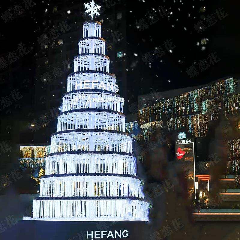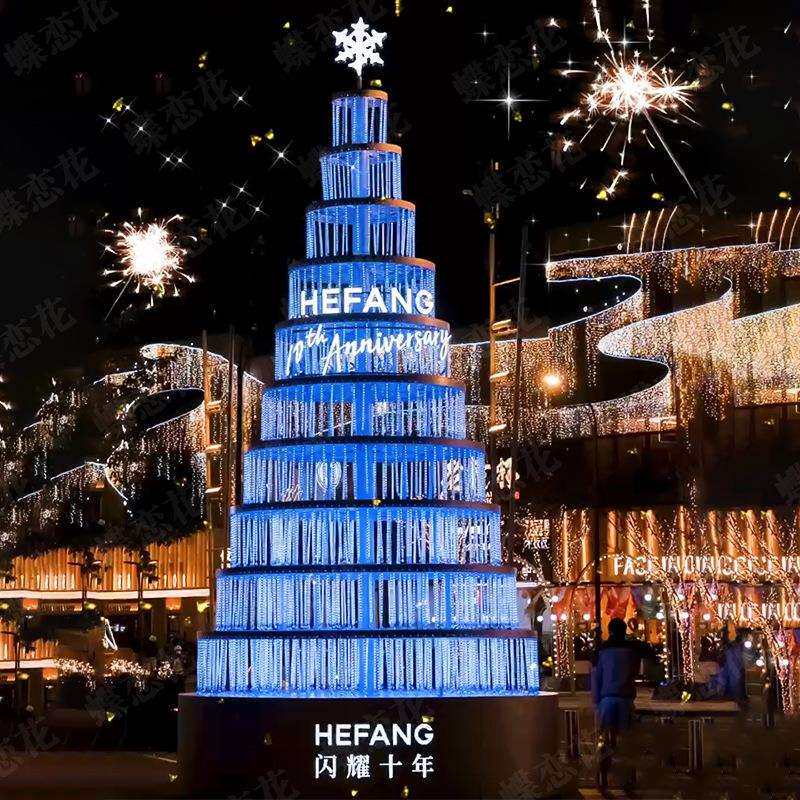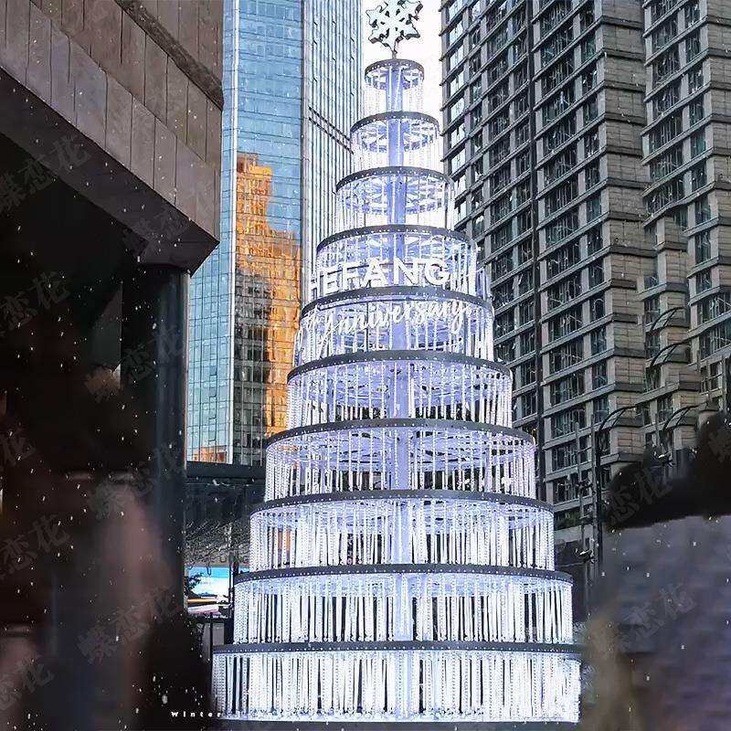 紫色雪花片发光圣诞树 蛋糕裙摆样式圣诞美陈 拉线灯光圣诞摆件