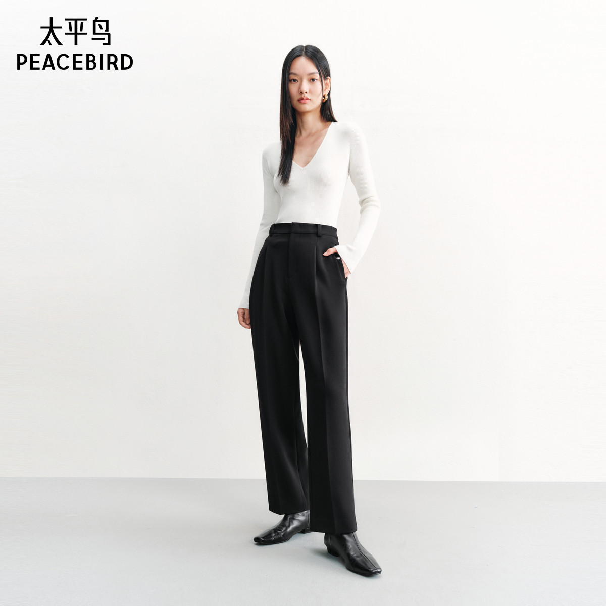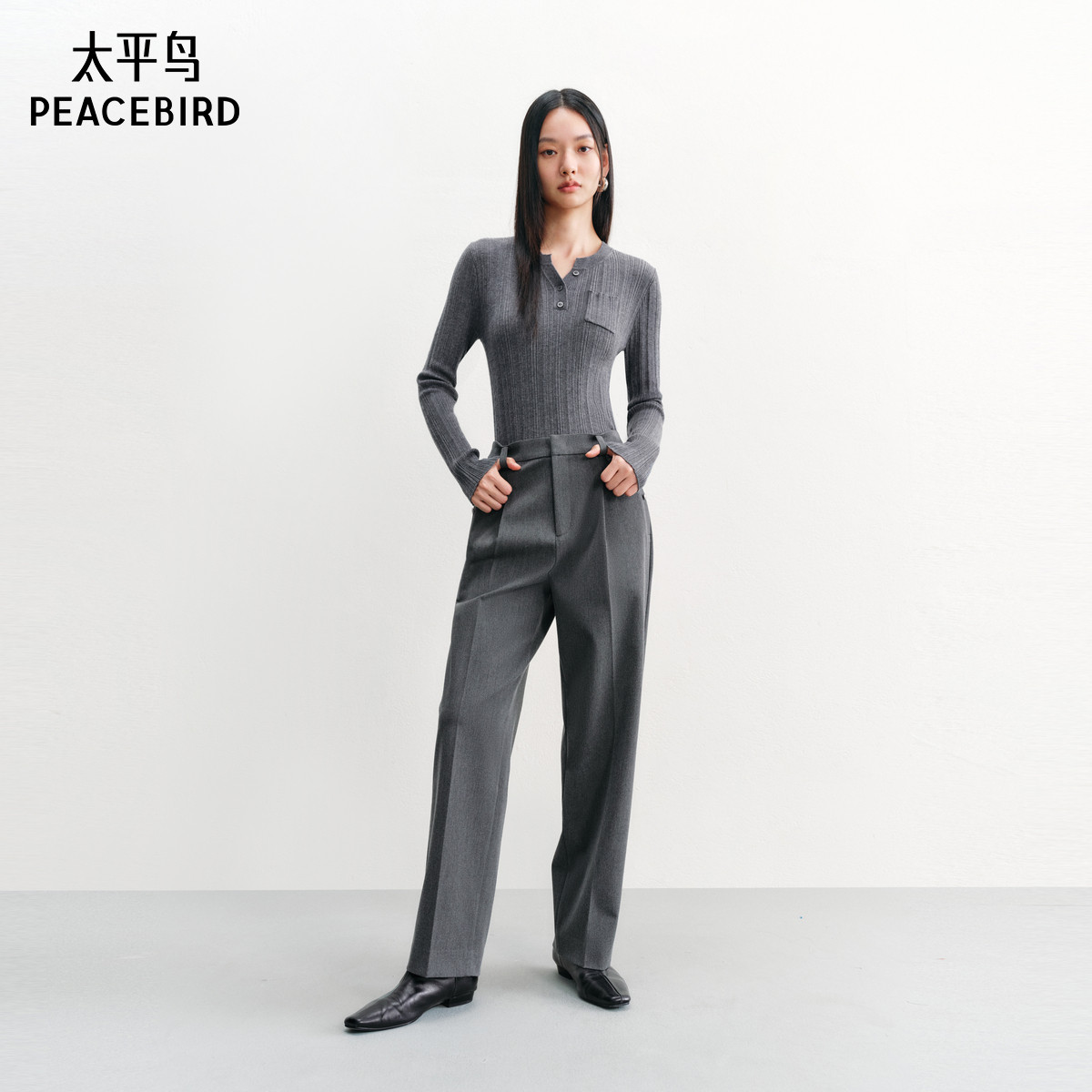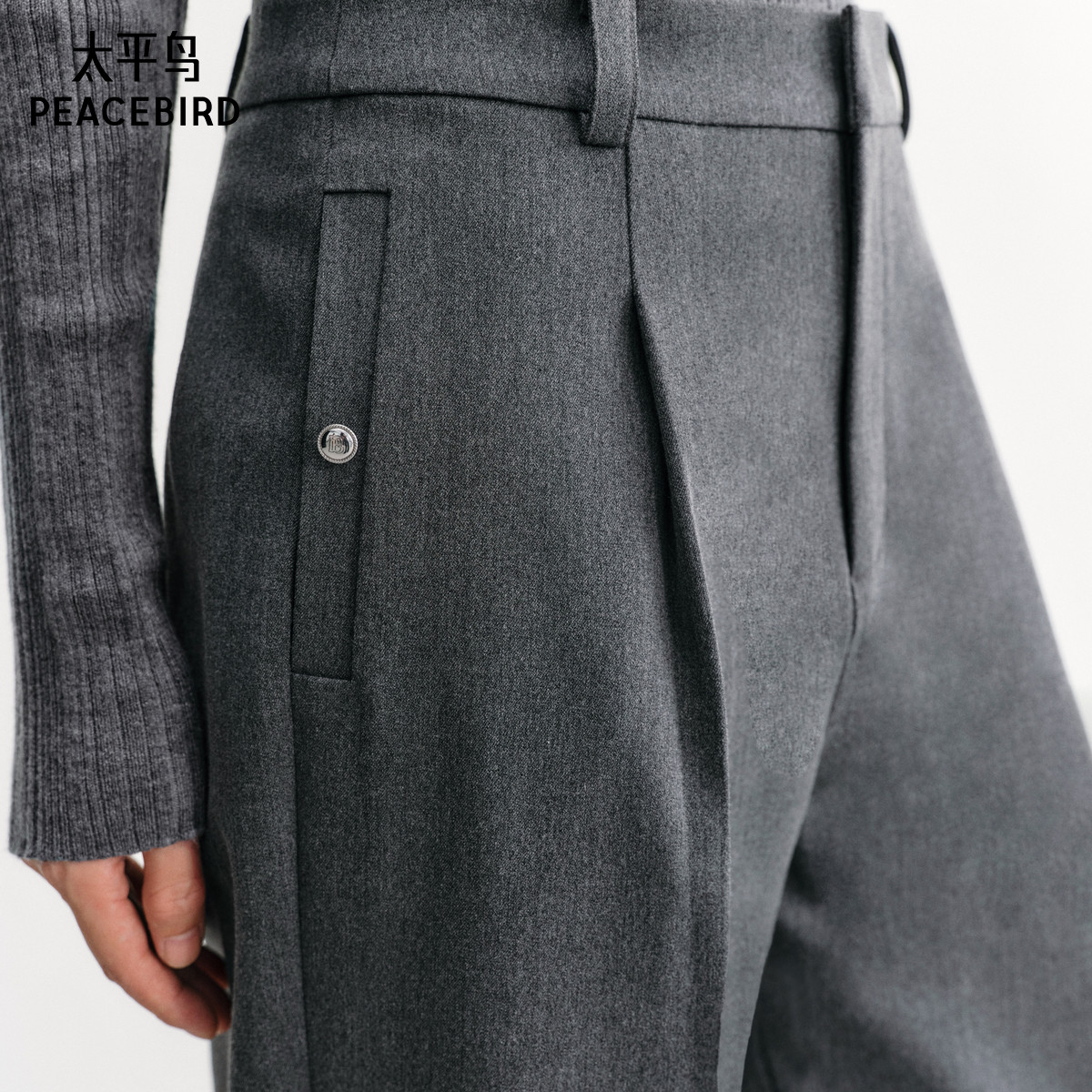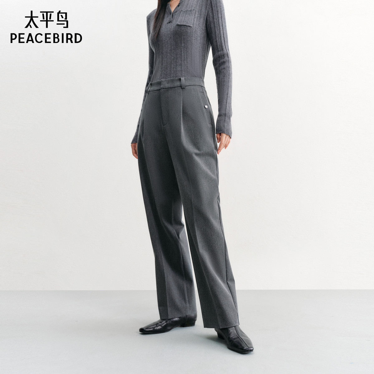 太平鸟时尚简约锥形休闲裤裤24年秋冬款高腰显瘦九分西装裤女
