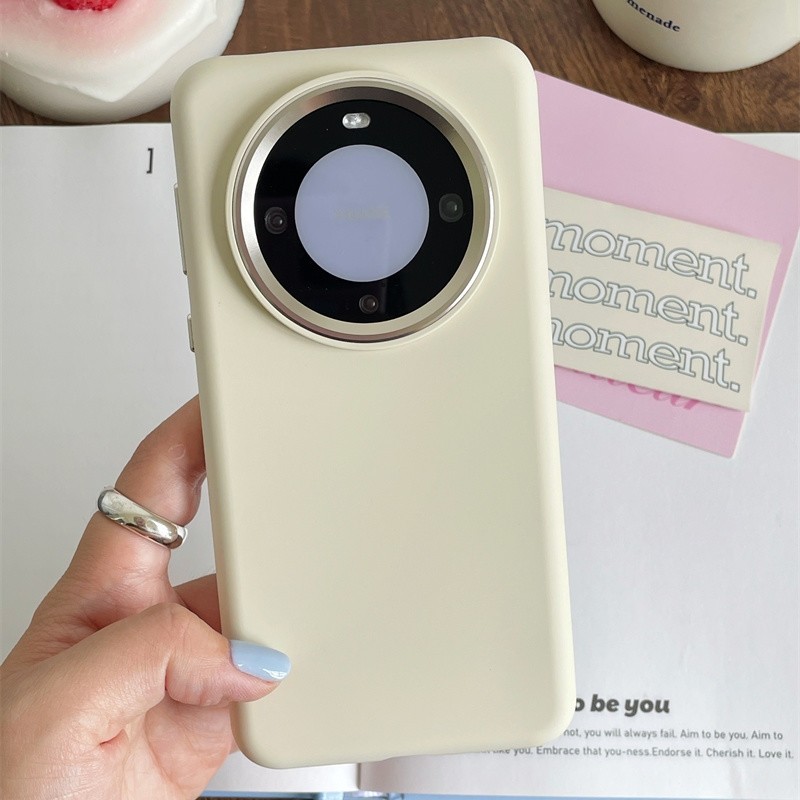 高品质真液态硅胶适用华为mate60pro+手机壳Mate70轻奢风金属镜框全包防摔套软糯内植绒手感好古董白耐脏男女