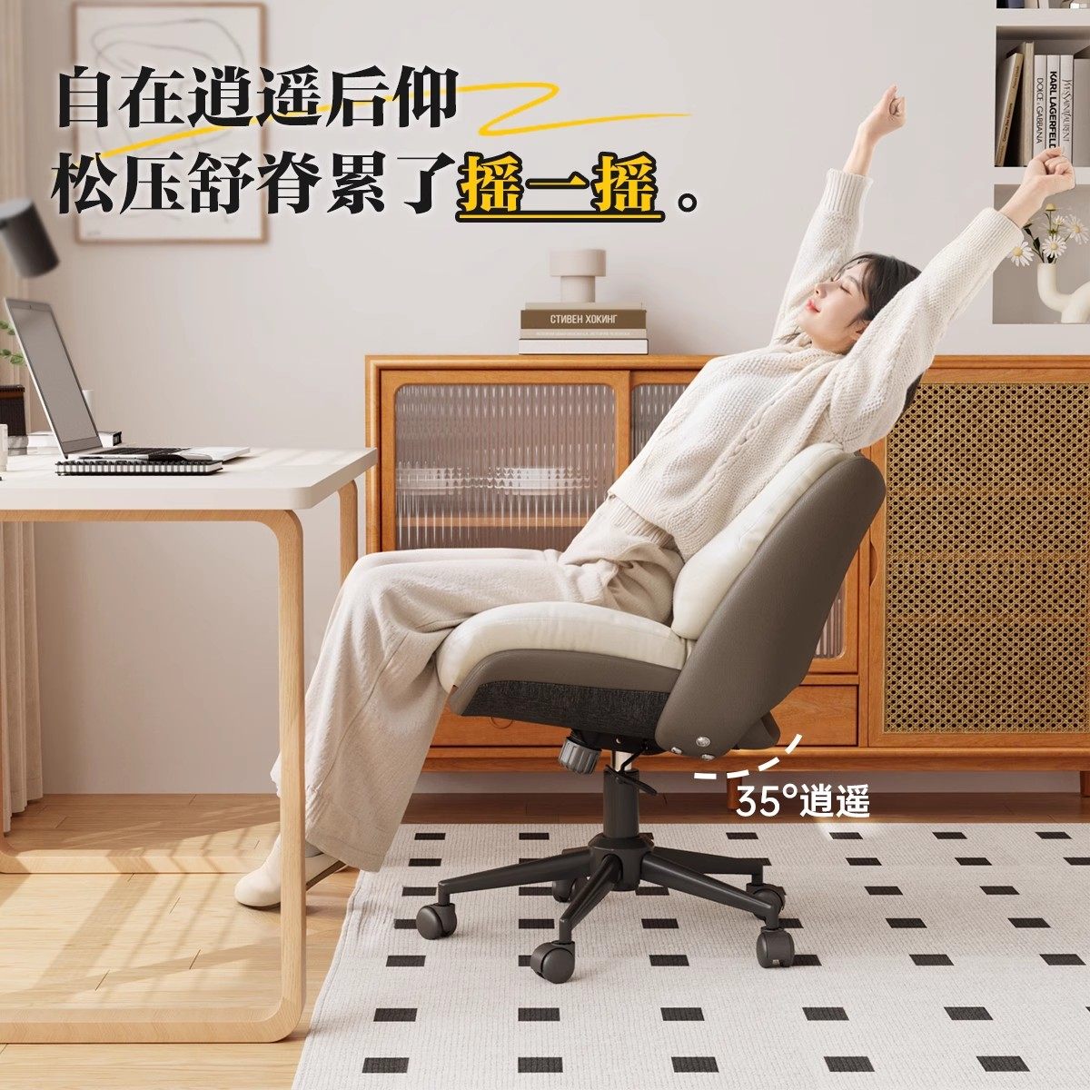 三梦电脑椅家用舒适久坐靠背椅宿舍书房卧室化妆学习旋转沙发椅子