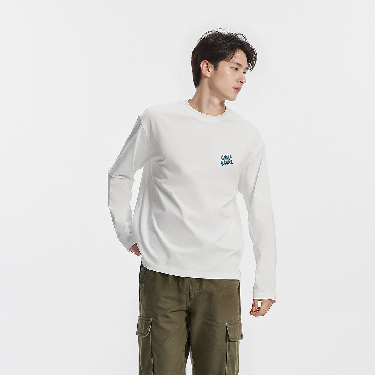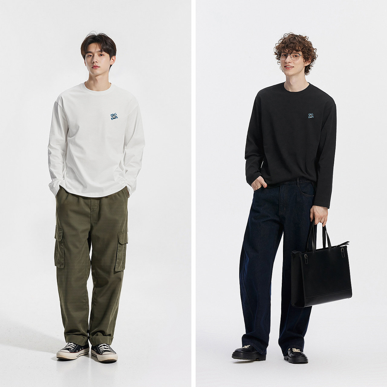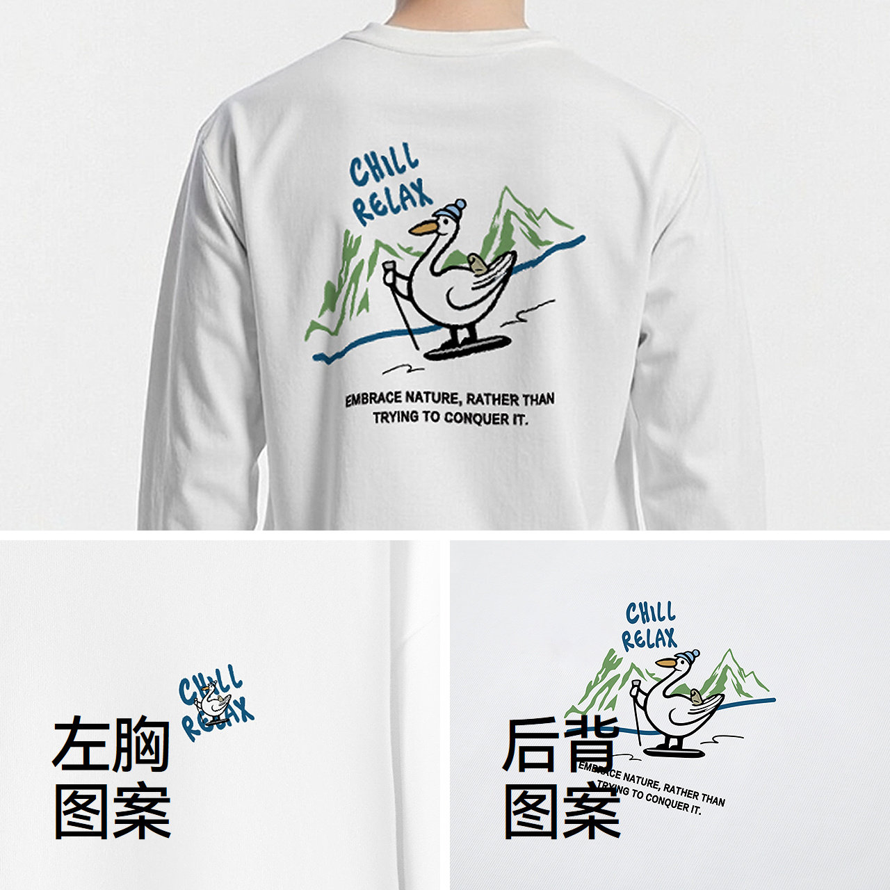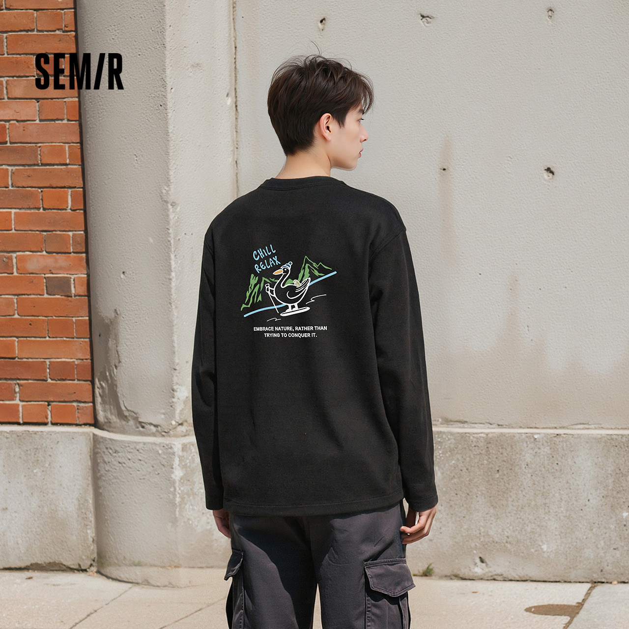 森马长袖T恤男秋可外穿印花打底衫情侣2025新款白色内搭圆领上衣