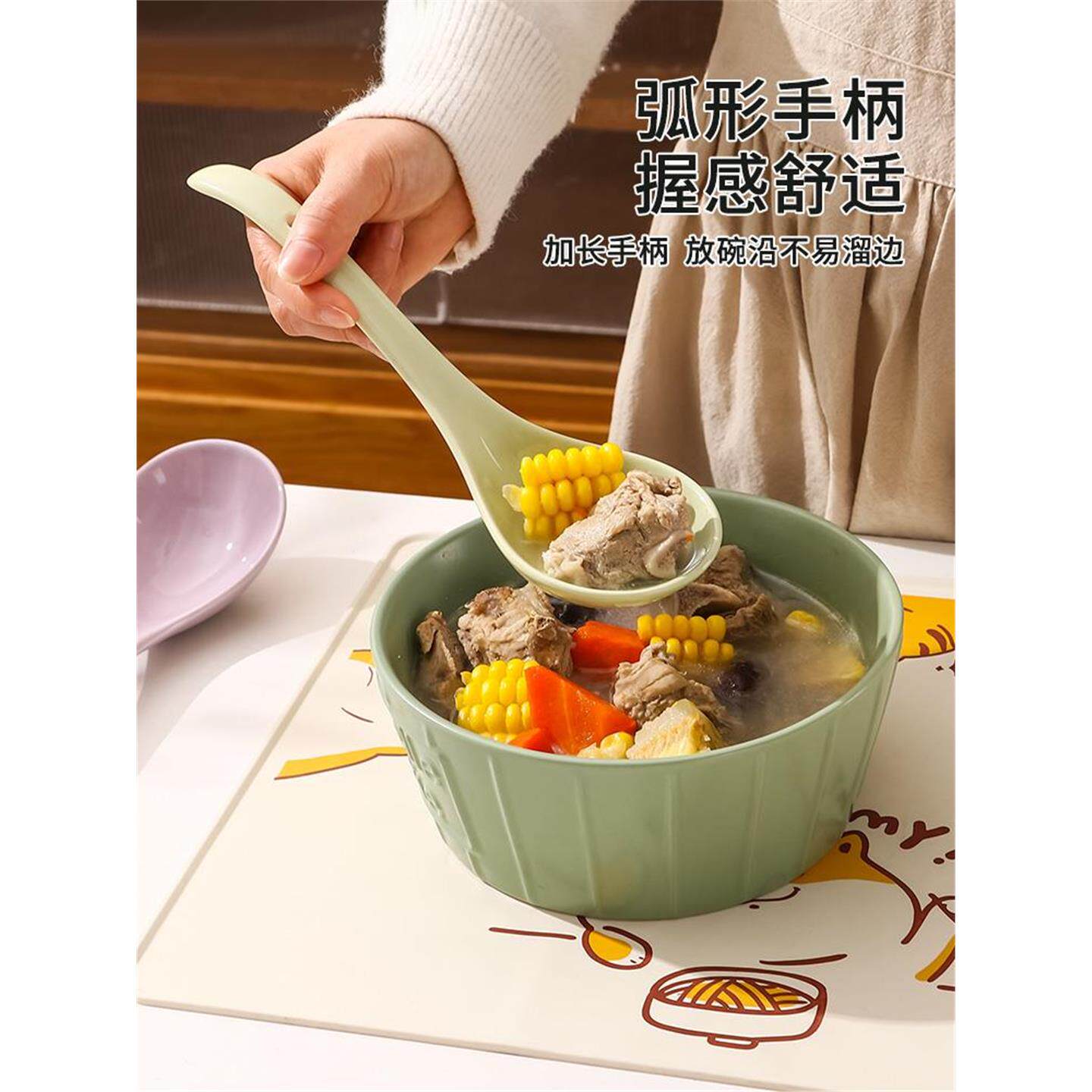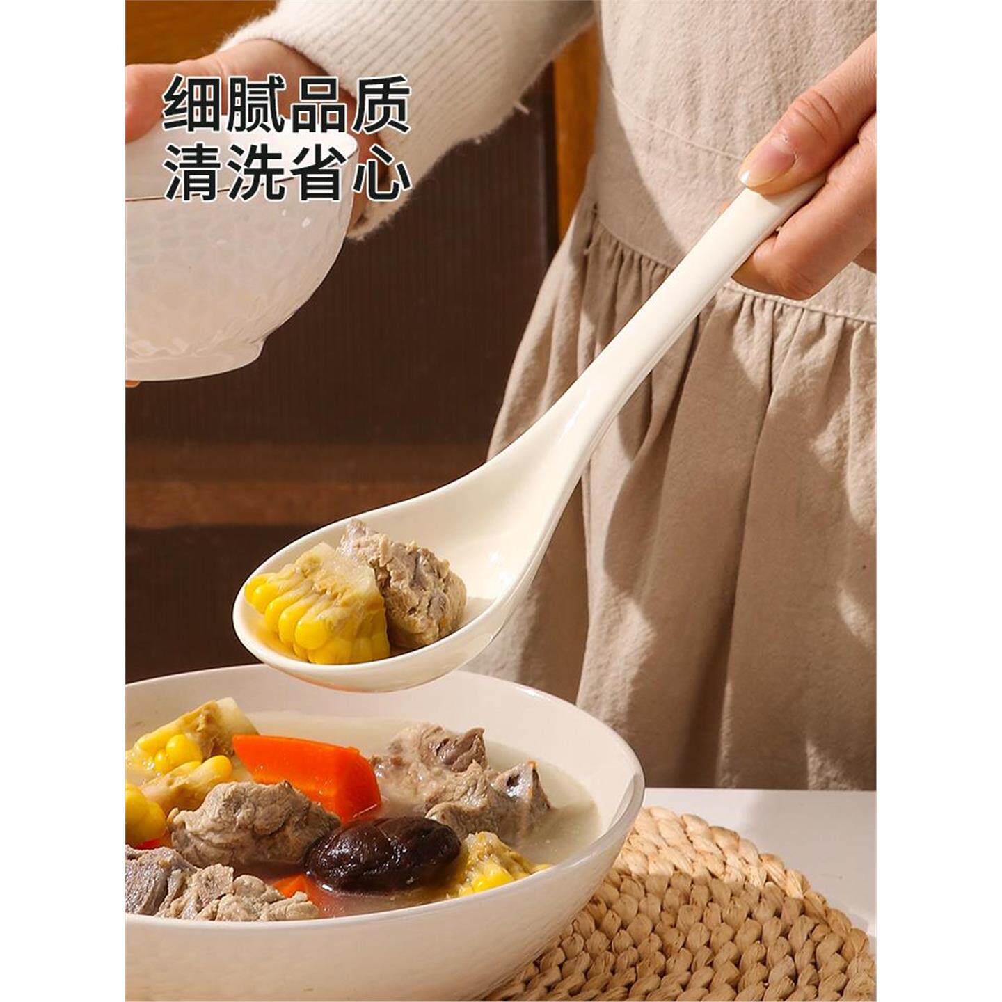 陶瓷大汤勺家用大号盛汤高档精致粥稀饭汤匙小号食品级长柄大勺子