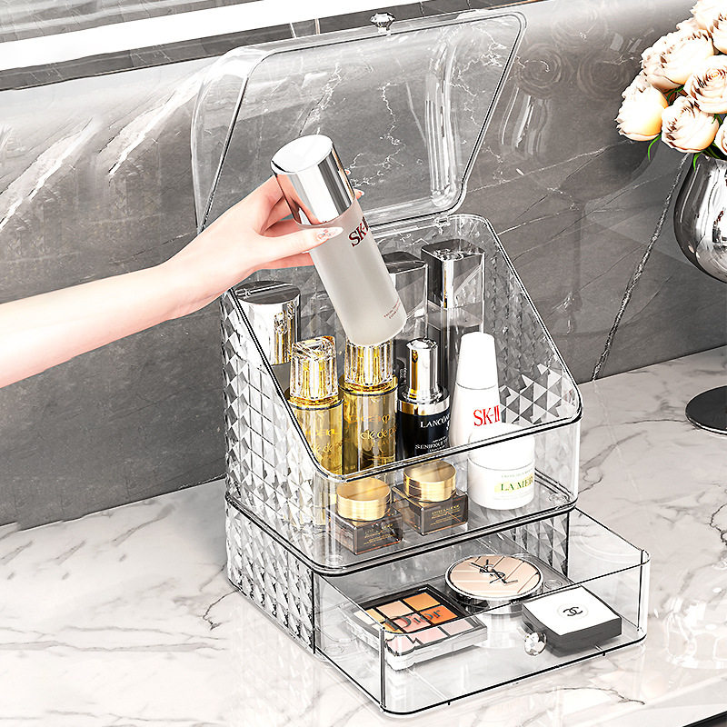化妆品收纳盒家用桌面护肤品收纳化妆盒防尘梳妆台洗漱台置物架