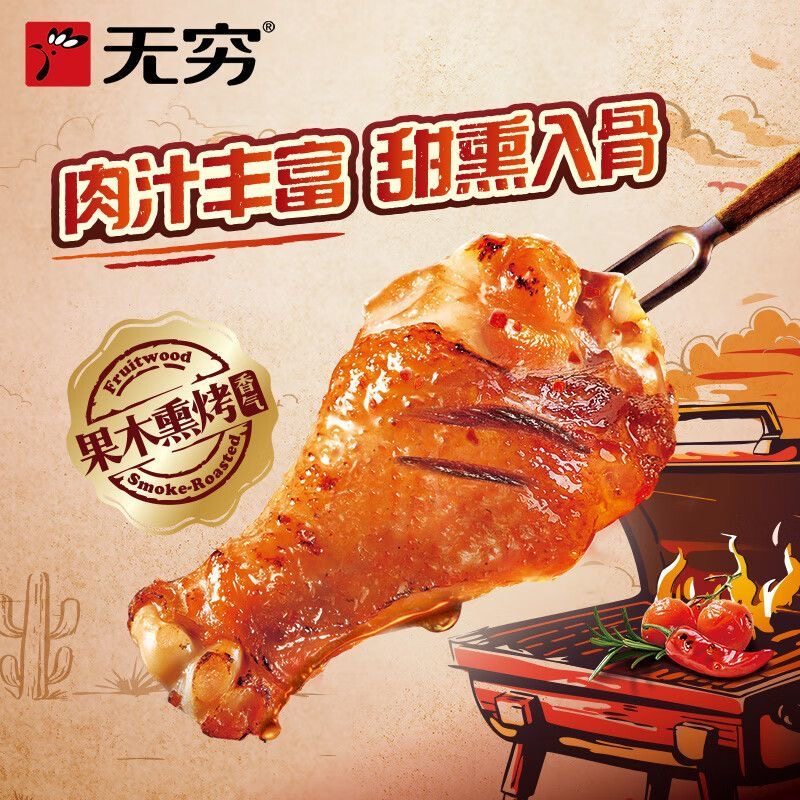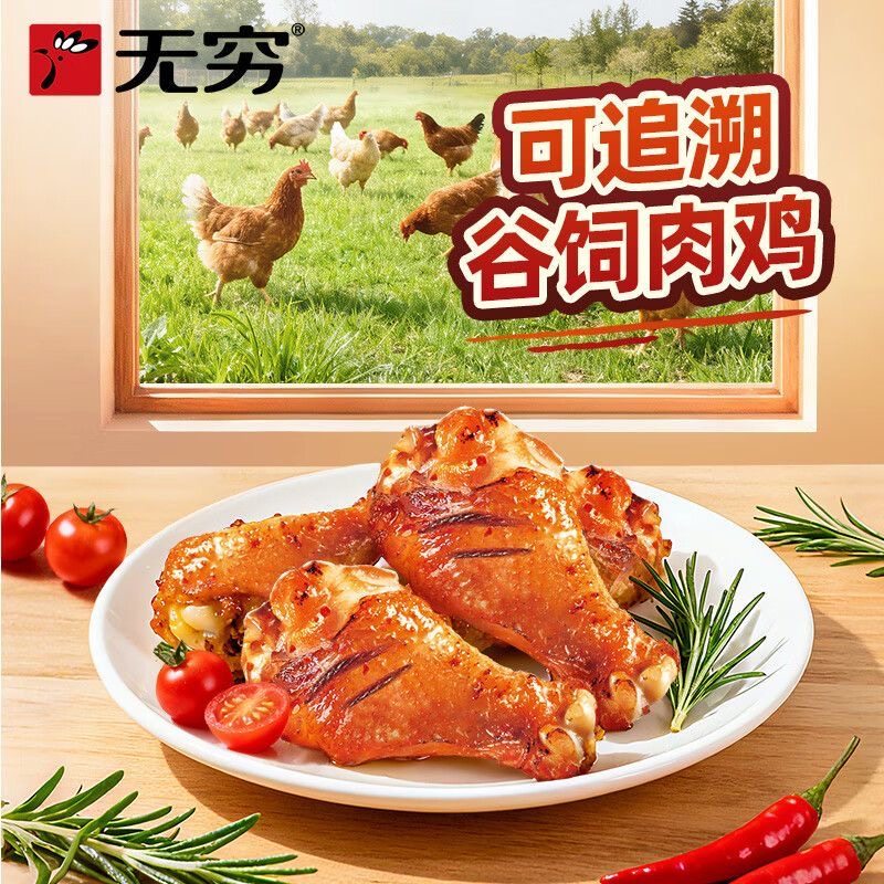 无穷烤鸡翅根美式甜辣小鸡腿休闲肉类零食小吃宵夜年货节鸡肉方便
