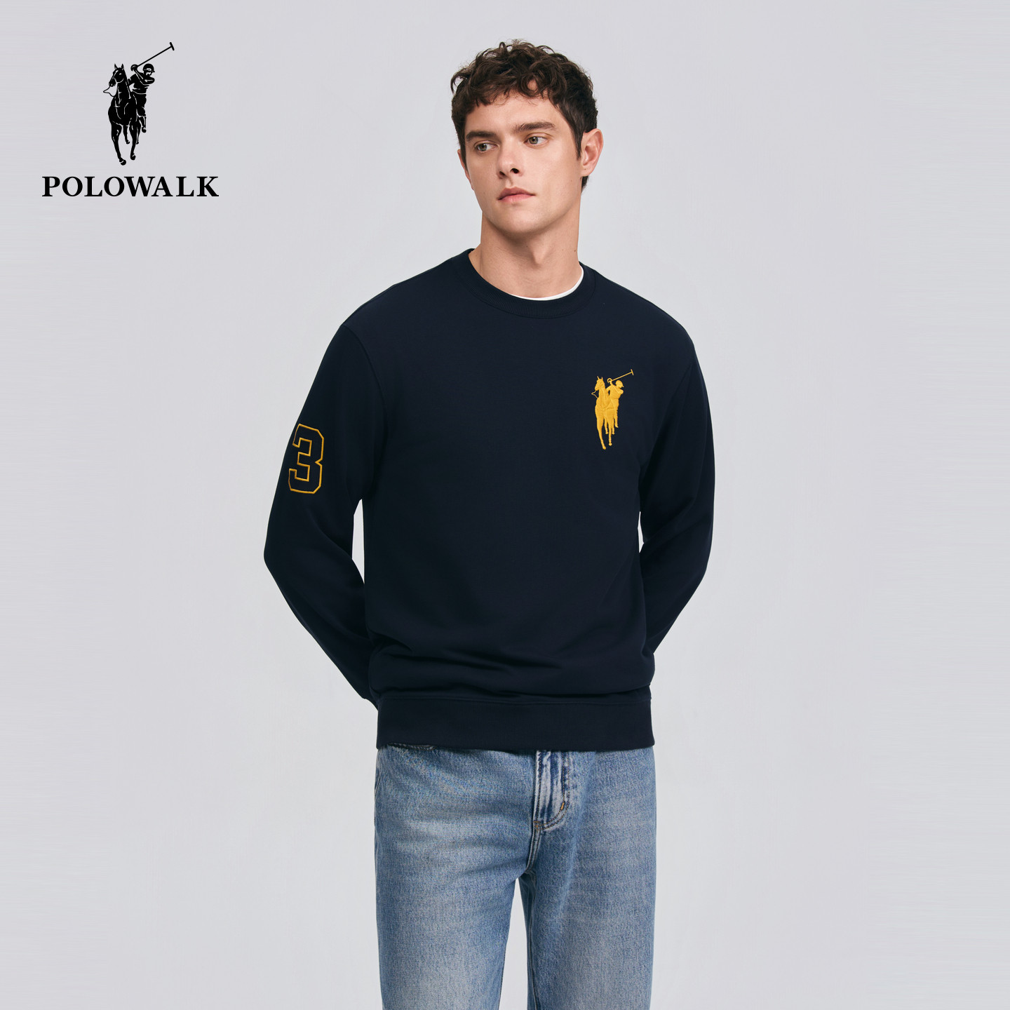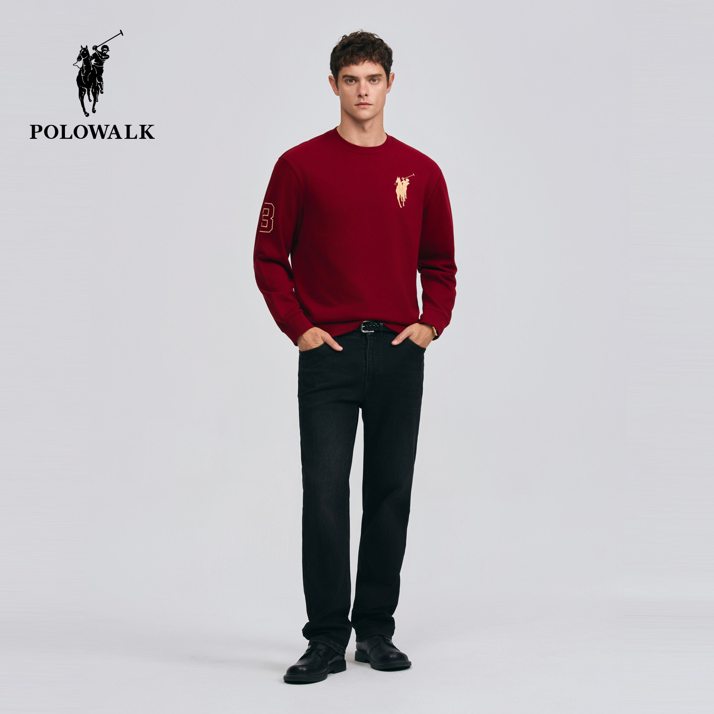 【红色款】POLOWALK男式卫衣2026春季新品简约红色圆领套头卫衣男