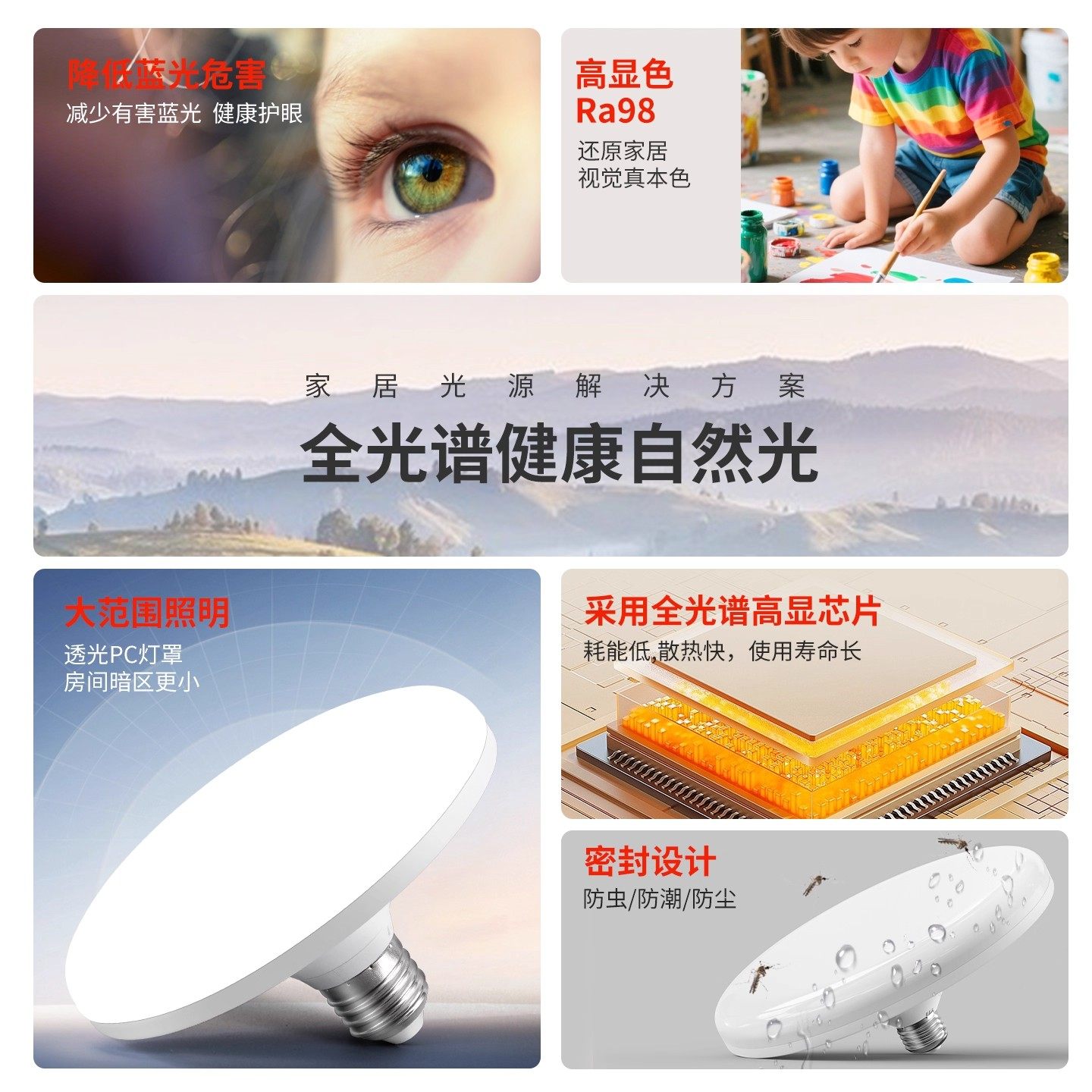 全光谱飞碟灯节能灯泡led超亮e27螺旋口防水家用球泡螺口暖光护眼