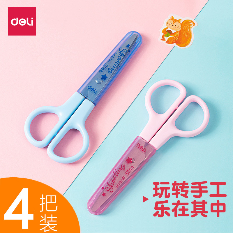 得力小学生儿童安全手工剪刀圆头保护盖可爱幼儿园剪纸不伤手剪刀