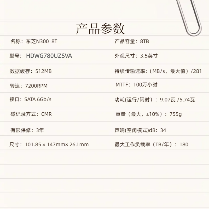 行货东芝 nas硬盘8T N300 7200 cmr NAS网络存储台式监控机械硬盘