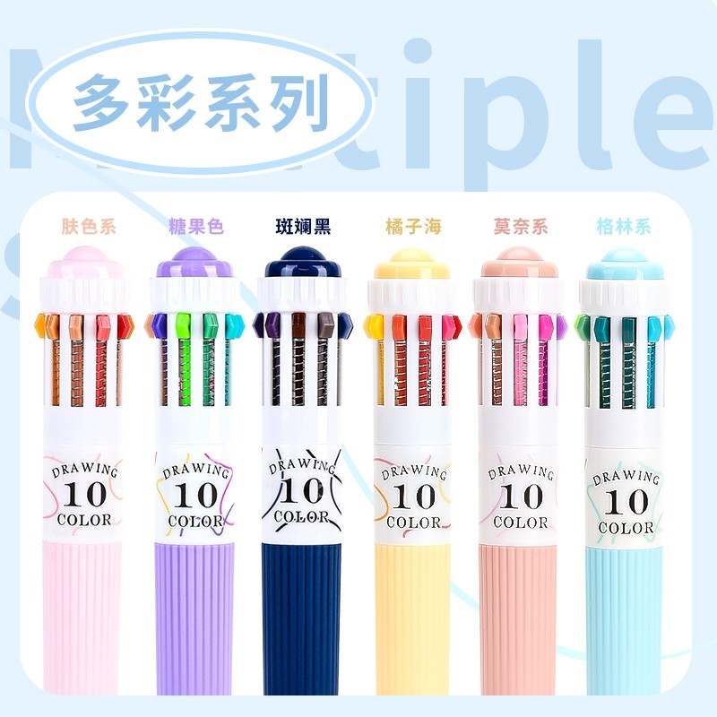10支6色圆珠笔多色手账笔韩国创意文具简约可爱多功能按动彩色笔