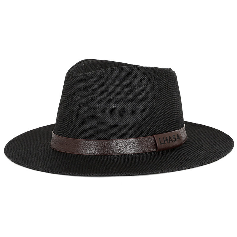 夏季礼帽男亚麻遮阳帽巴拿马平沿英伦爵士帽高端防晒绅士帽批发