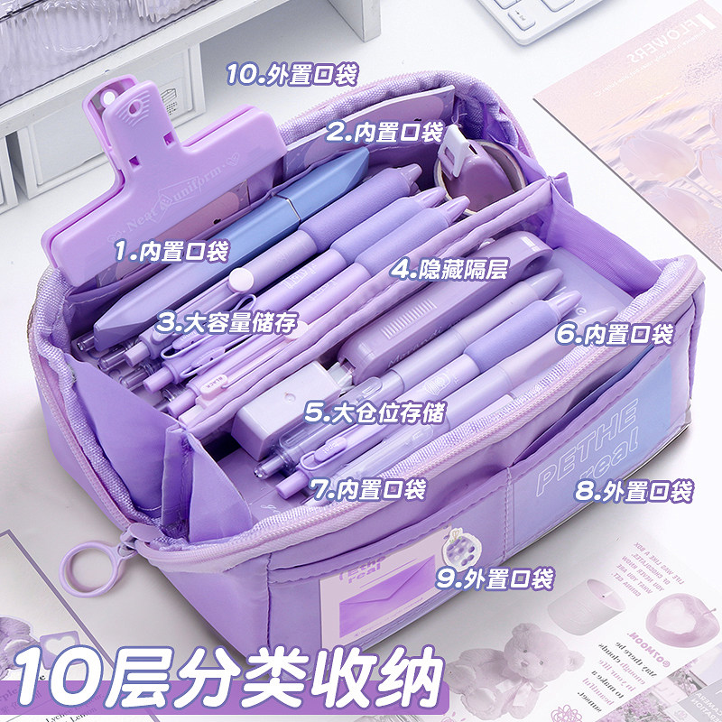 笔袋10层大容量初中生2025超火女孩版文具盒透明铅笔盒女生高颜值文具袋女款棱镜铅新款小学生简约棱镜笔袋