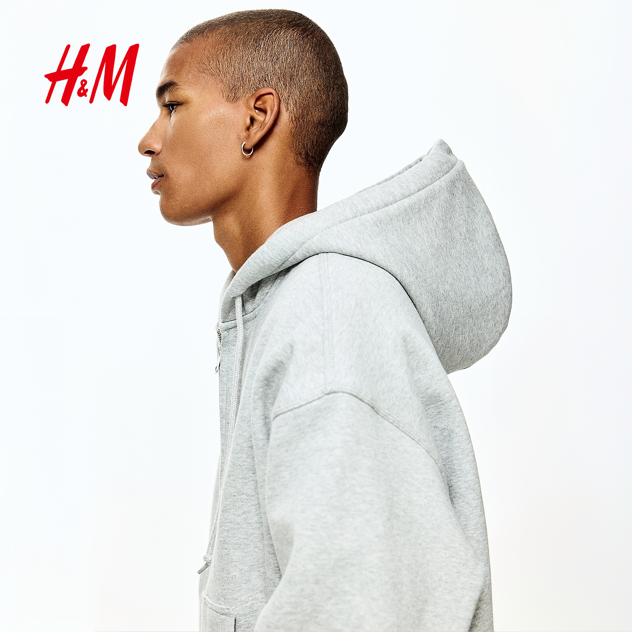 HM男装女装休闲卫衣开衫春季新款落肩宽松大廓形拉链帽衫1240531