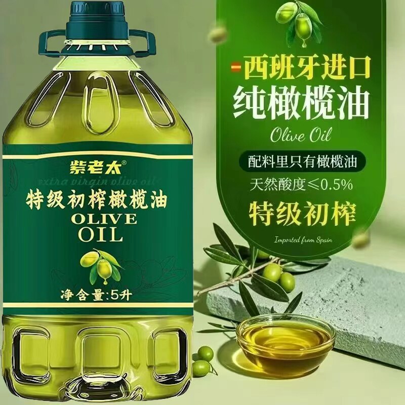 纯正橄榄油5L装特级初榨橄榄油无添加炒菜低脂健身食用油官方正品