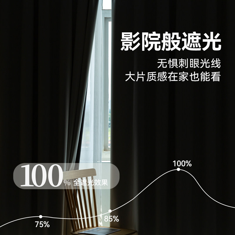 全遮光窗帘2025新款卧室遮阳布阳台客厅隔断帘防晒帘免打孔帘飘窗