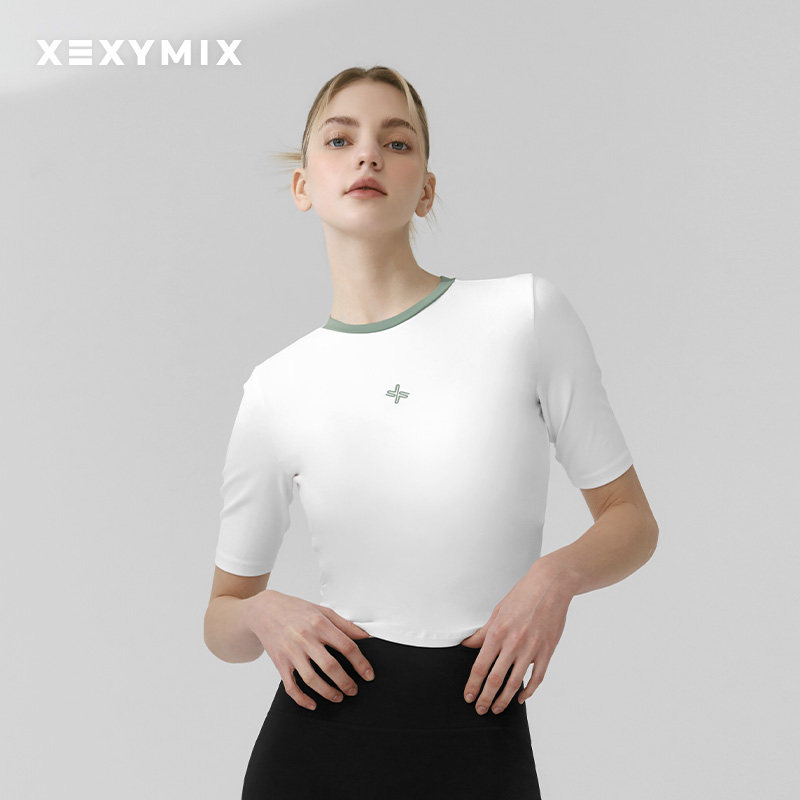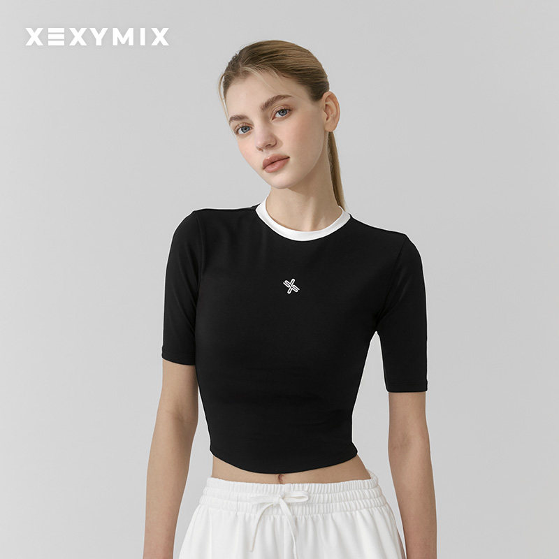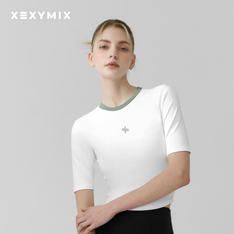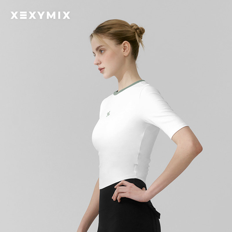 xexymix杰克茜女撞色简约修身上衣中袖短袖T恤瑜伽舞蹈XFK2TS1103