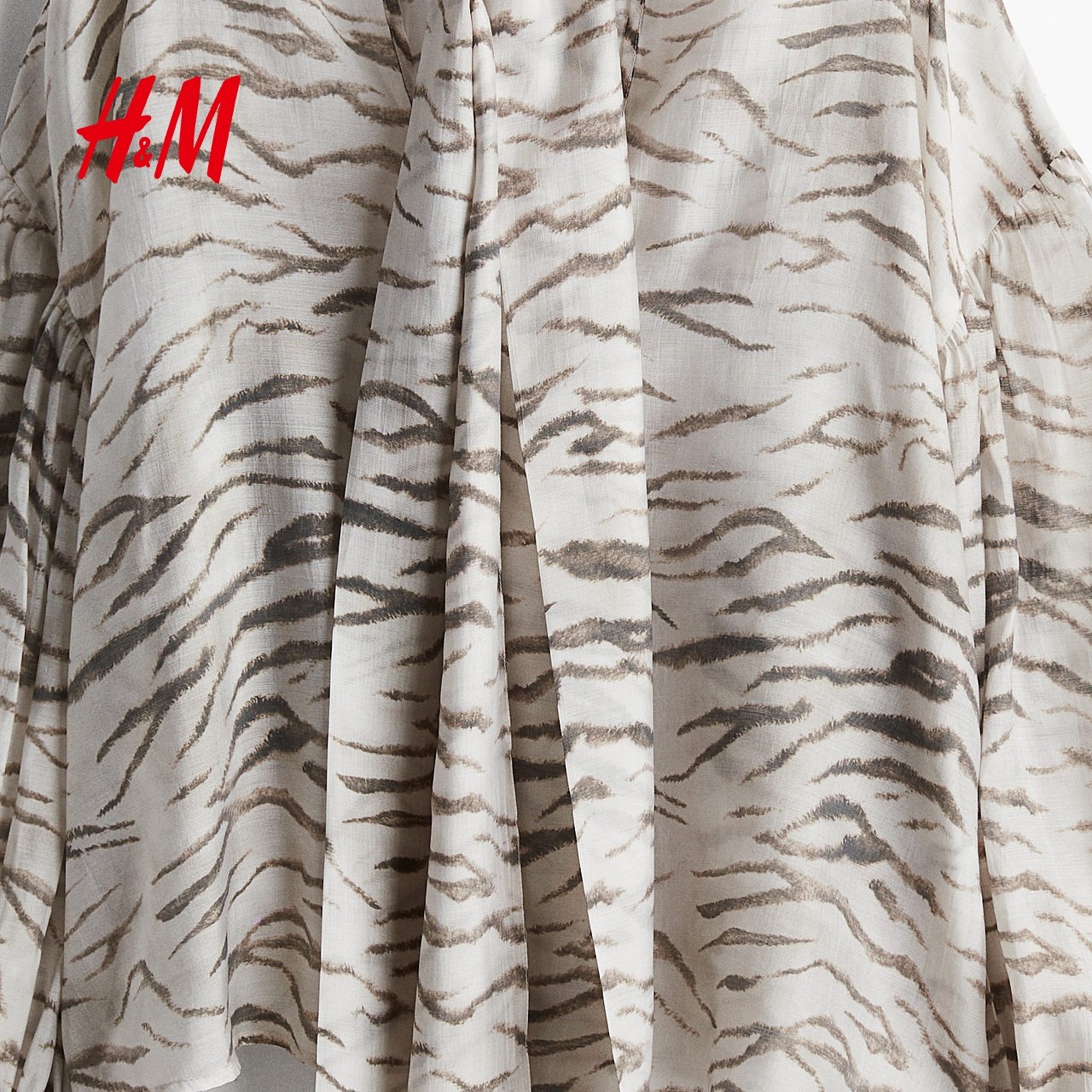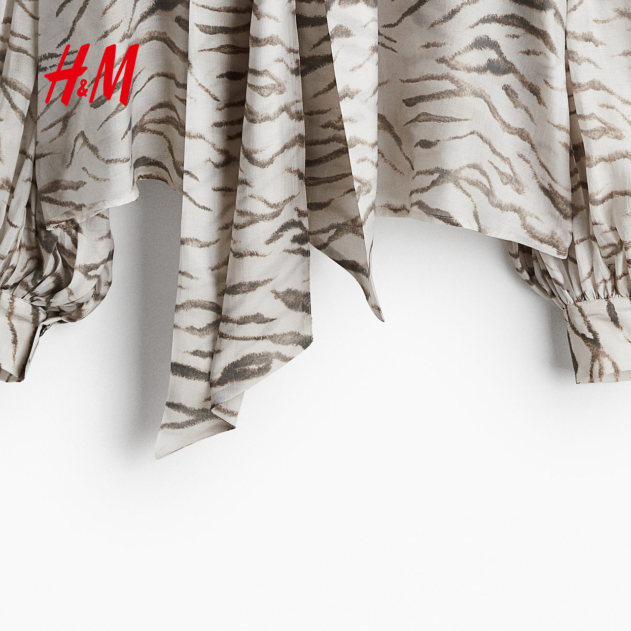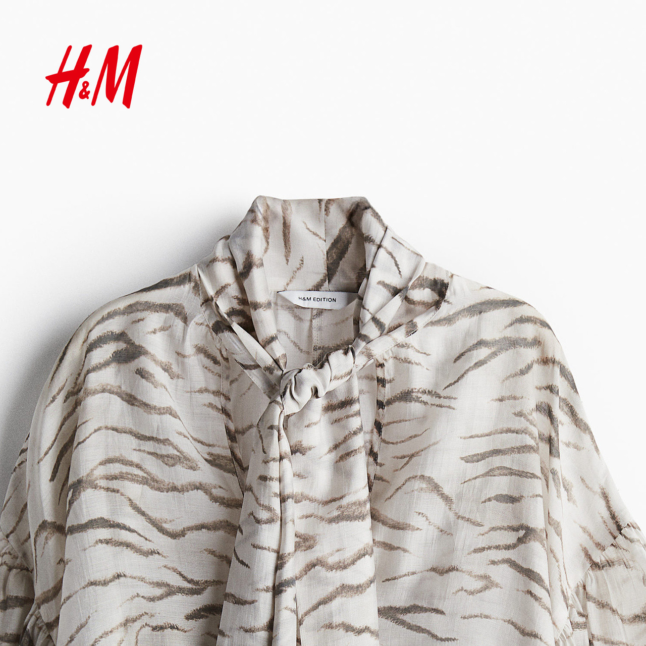 HM女装衬衫冬季透气领口系带印花灯笼长袖衬衫1256476