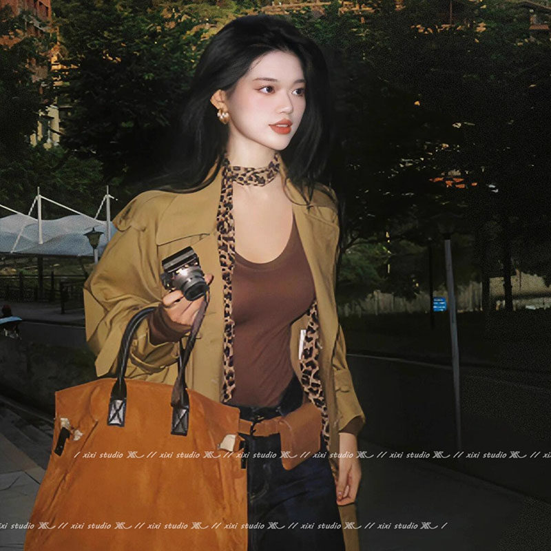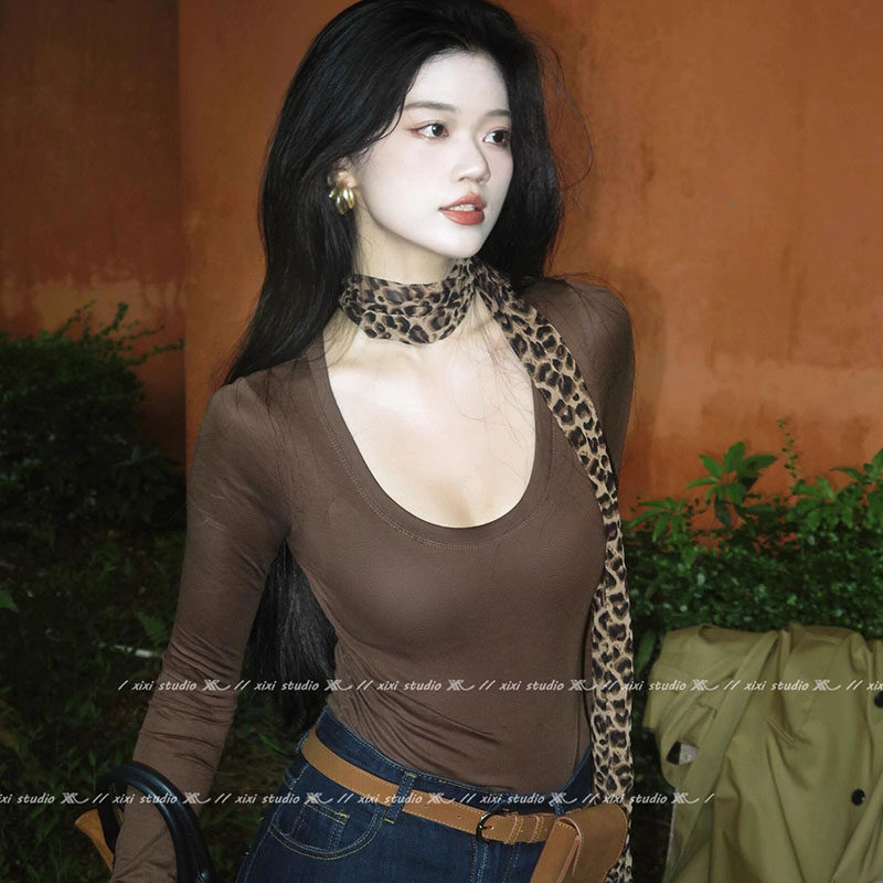 秋冬辣妹风豹纹头饰性感港风系带女长款配饰百搭长款秋冬饰品