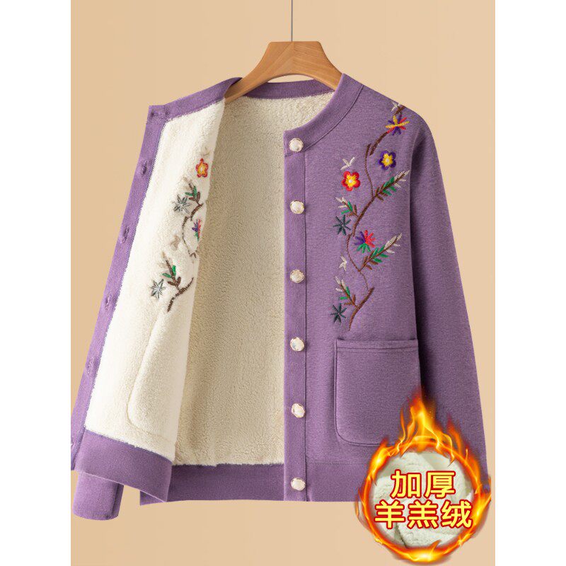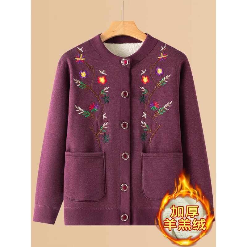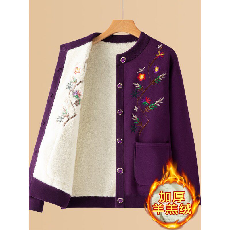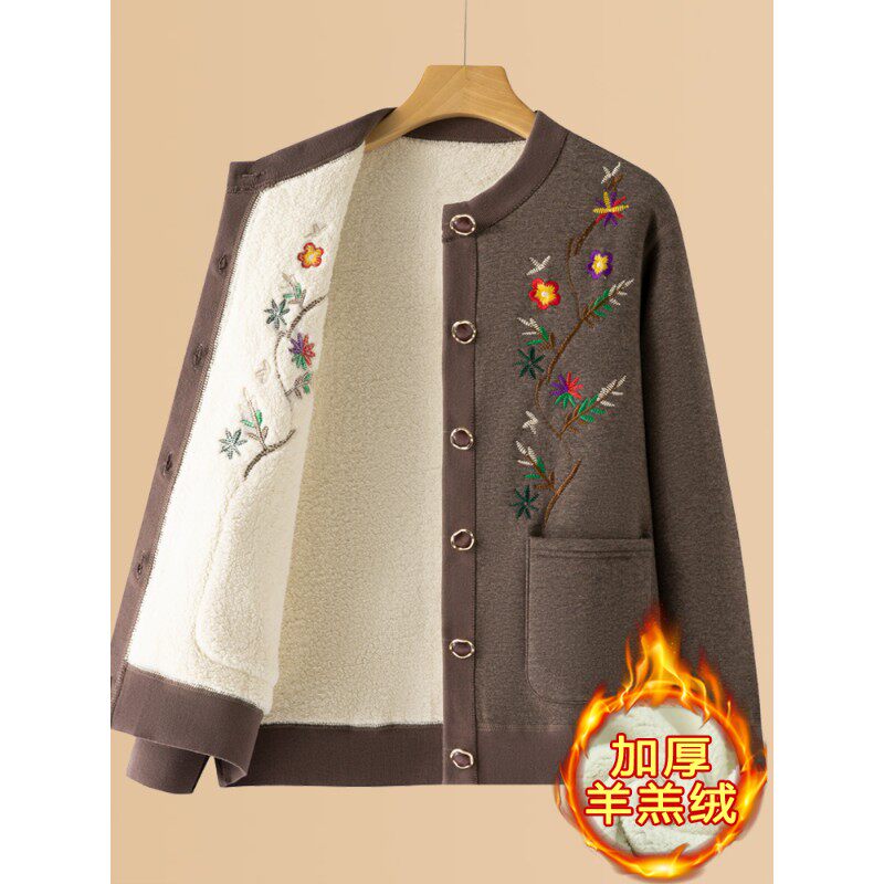 冬季保暖内衣套装中老年女加绒加厚羊羔绒开衫外套卫衣奶奶妈妈装