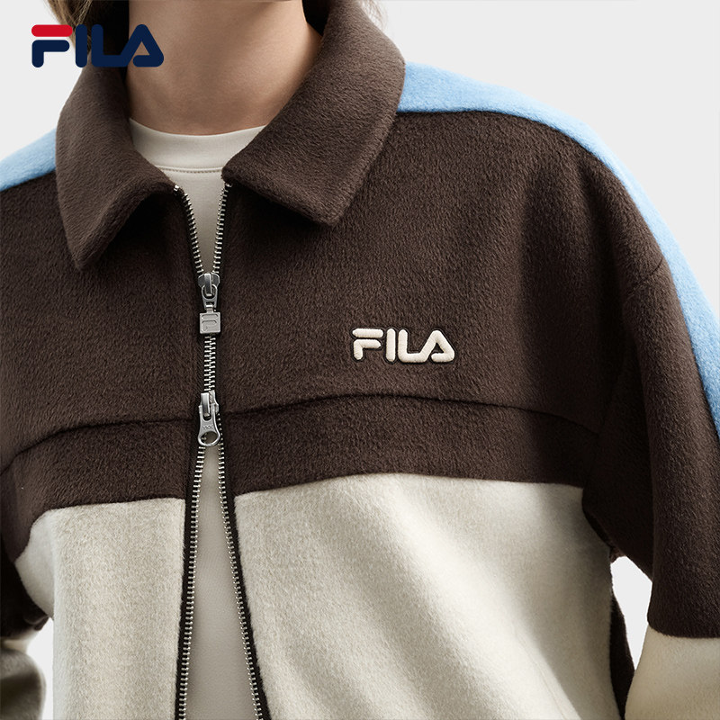 杨幂同款FILA斐乐官方女呢子外套26春新休闲宽松撞色外套保暖上衣