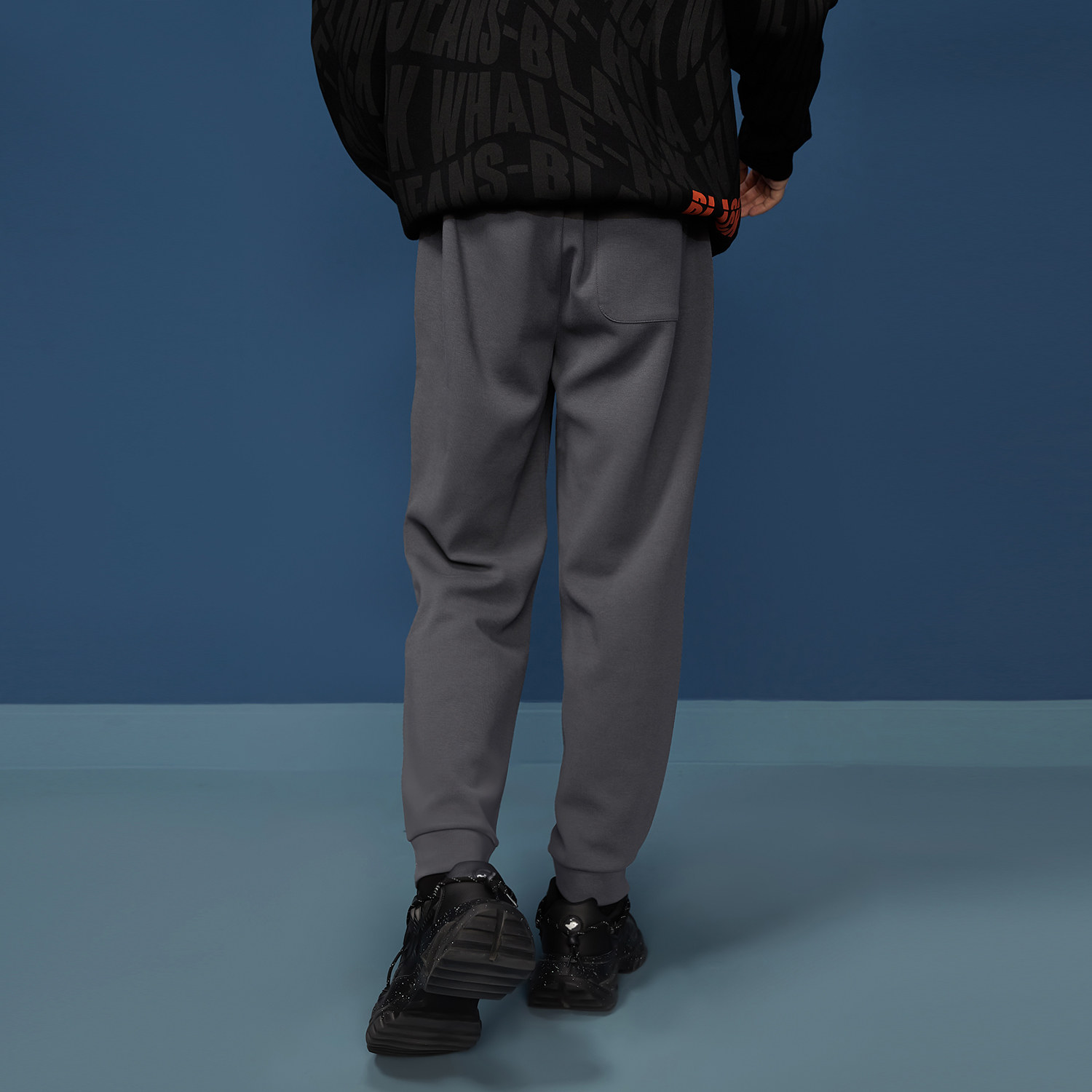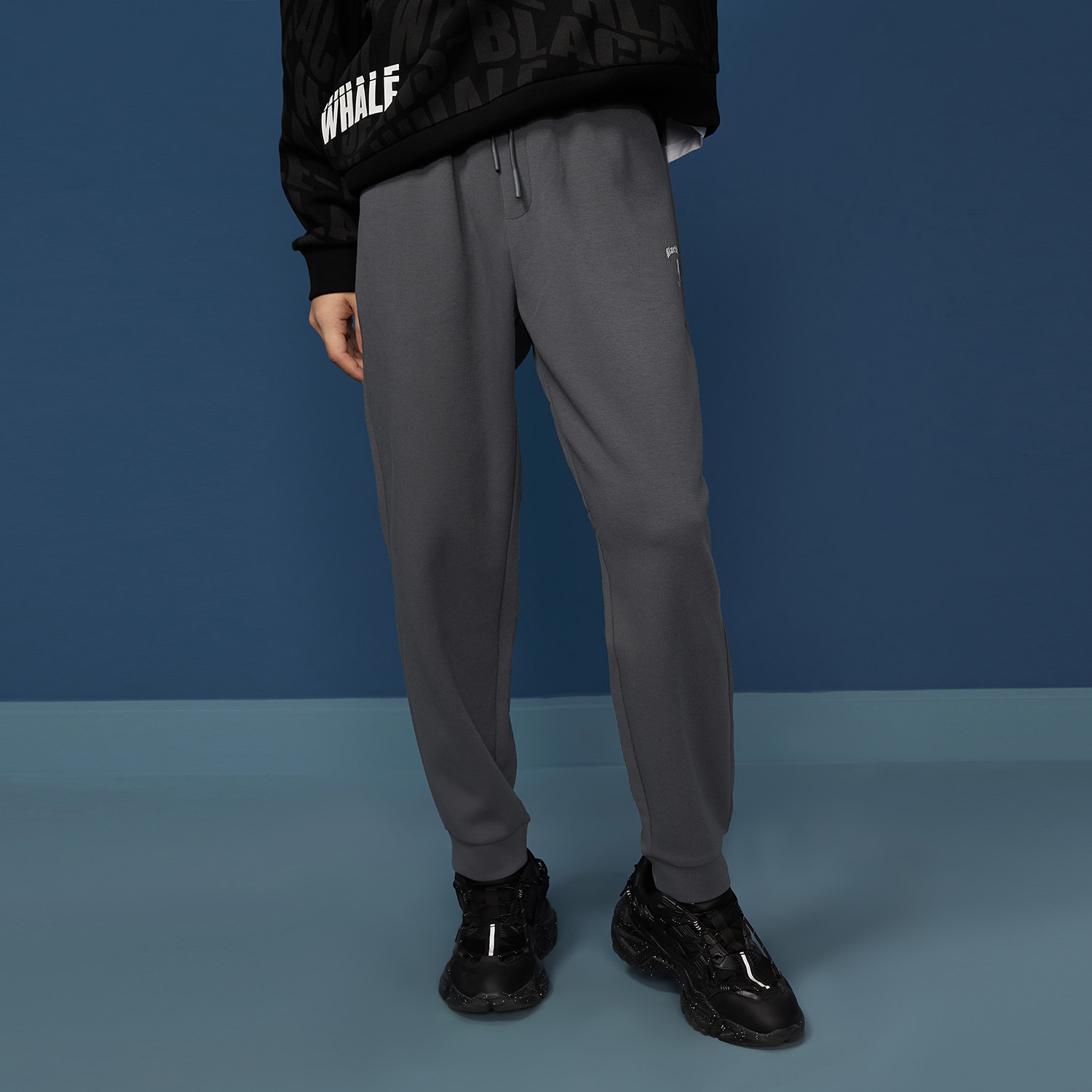 海澜之家旗下黑鲸HLAJEANS潮牌腰间抽绳束脚裤运动风卫裤两色可选
