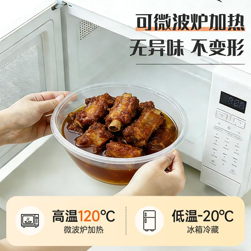 一次性碗食品级可微波加热圆形餐盒打包盒带盖耐高温高档家用饭盒
