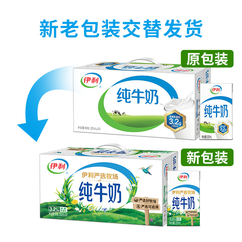 【优惠现货】伊利严选牧场纯牛奶250ml*24盒优质奶源严选早餐伴侣