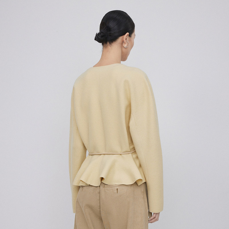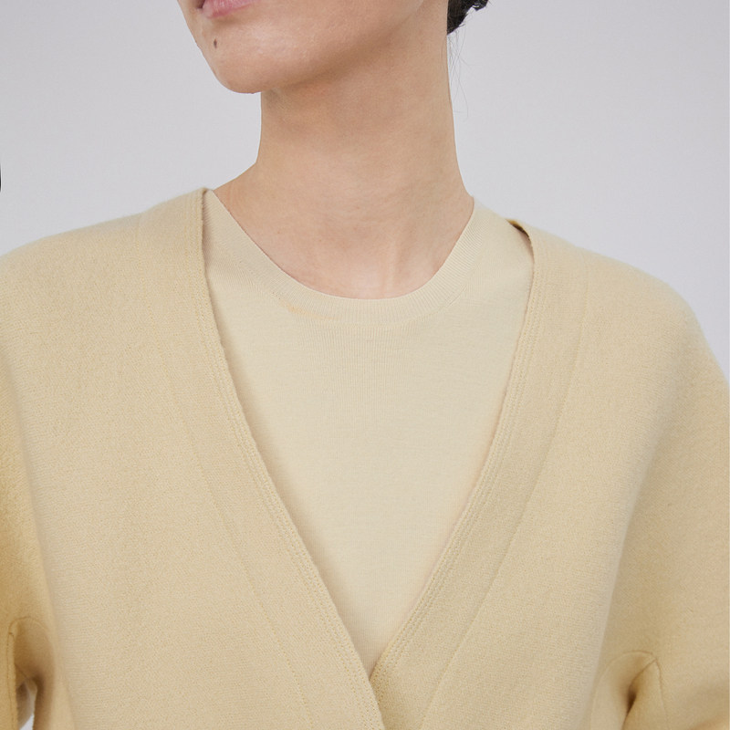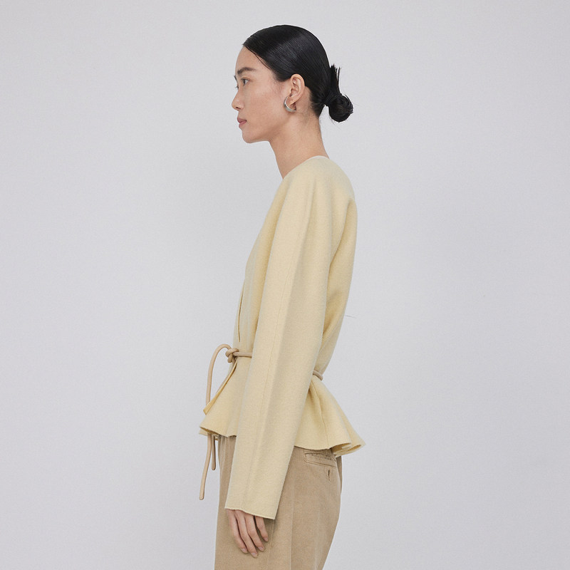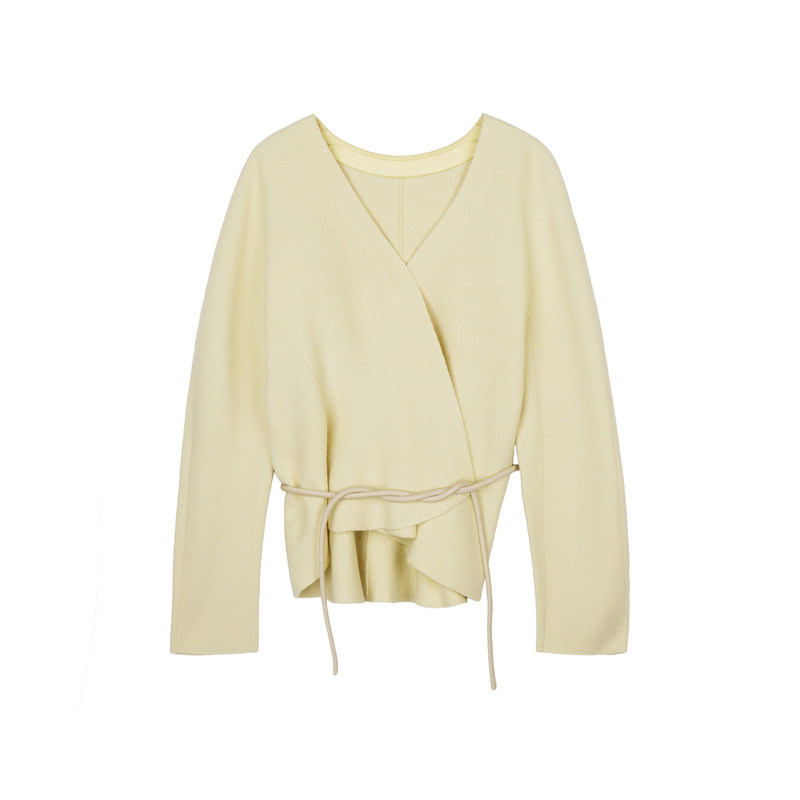 LESS春秋绵羊毛开衫女休闲简约系带收腰V领短款针织衫2N9310830