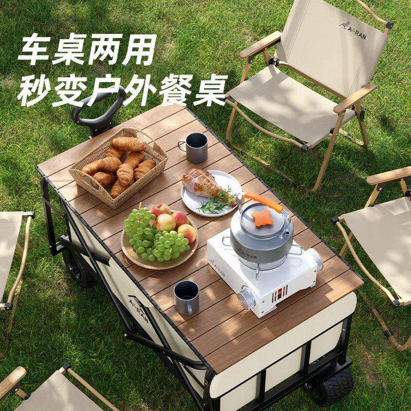 户外露营车可折叠便捷拉杆手推车野餐营地摆摊桌板旅行快递小推车