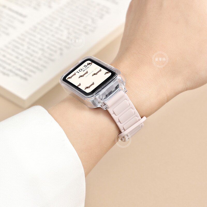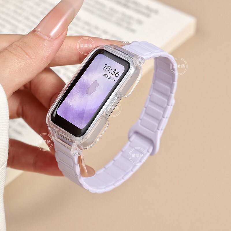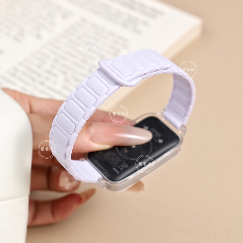 适用华为手环10/9/8表带磁吸硅胶创意拼色通用10NFC版八九十代腕带荣耀9/10替换高级感7透明框陶瓷黑色绿色