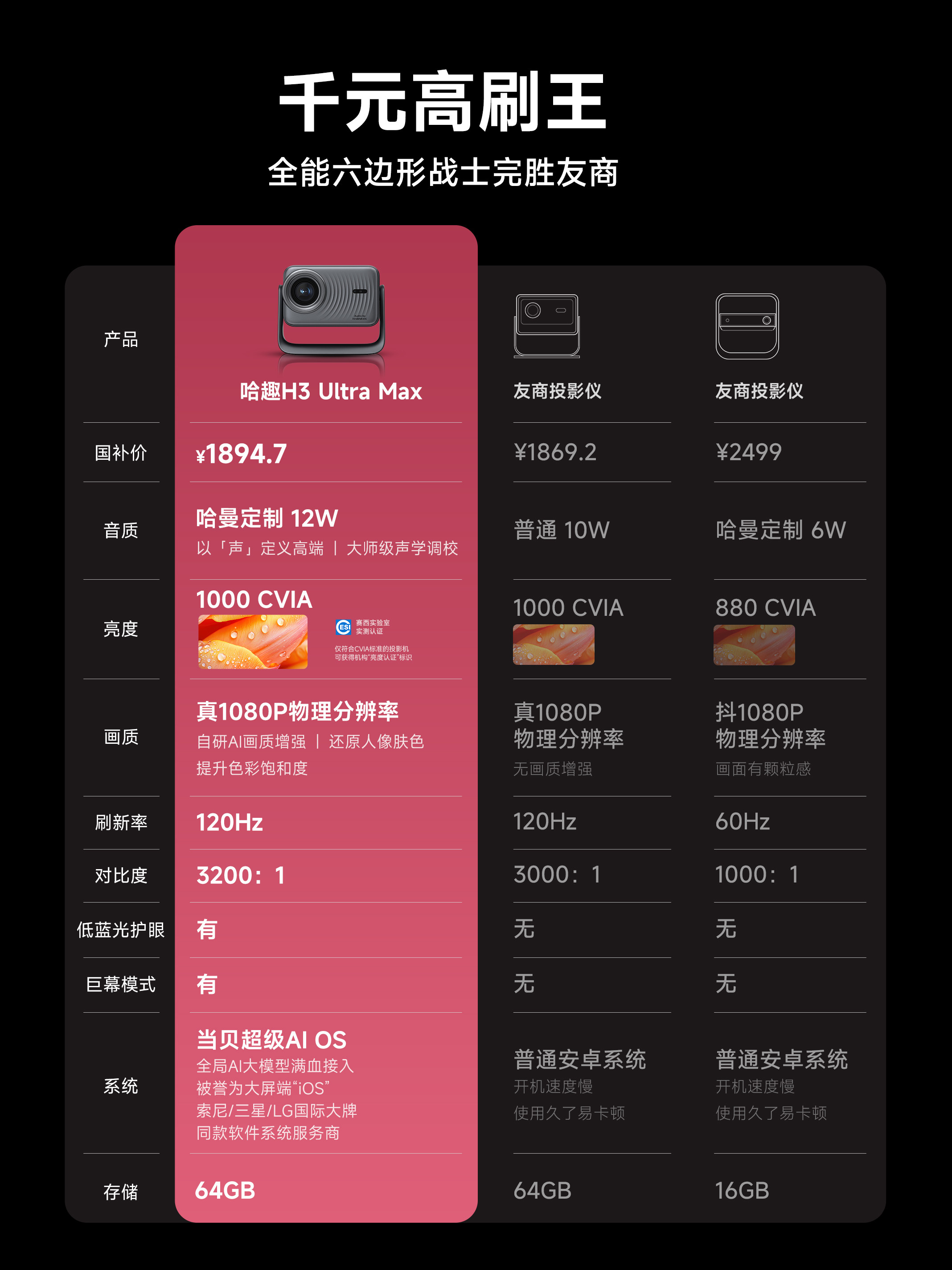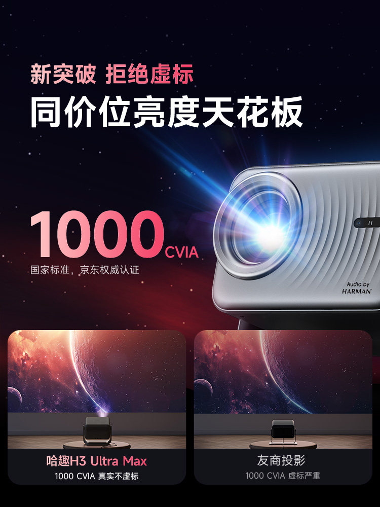 【哈曼联名】哈趣H3UltraMax投影仪家用超高清4K解码120hz高刷2025新款1080P客厅卧室智能影院投屏 276