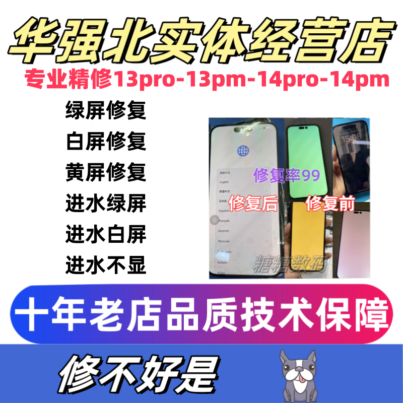 苹果手机修复14pro压排14promax/13pm镭射15pro专业屏幕白绿维修